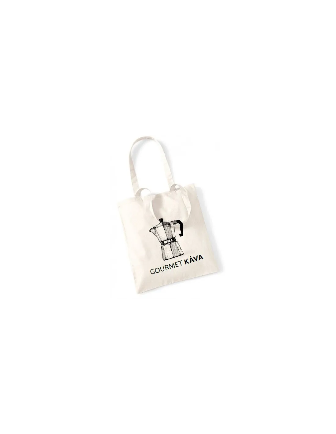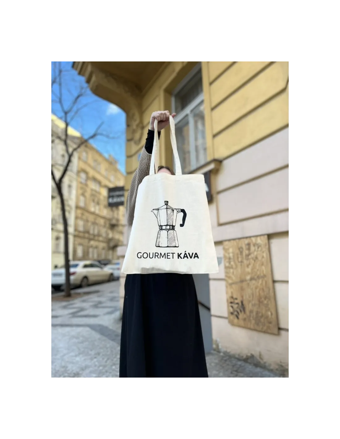 Stylová plátěná taška přes rameno s motivem moka konvička.