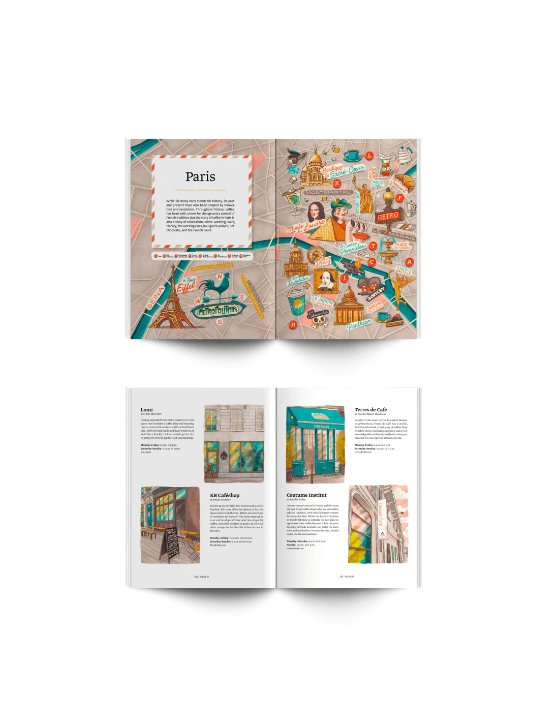 V kapitole "Svět" zpovídáme knižního historika Geriho Dellu Rocca de Candia o jeho nedávné výstavě o tiskové revoluci 15. století. Následně se podíváme na podivný vztah mezi kávou a stand-up komedií, a cestou se naučíme pár vtipů. Poté se přesuneme do Paříže na procházku politicko-kulturní historií francouzského hlavního města - to vše očima kávy a celé to zakončíme příběhem o samotě, stvoření a kávě.