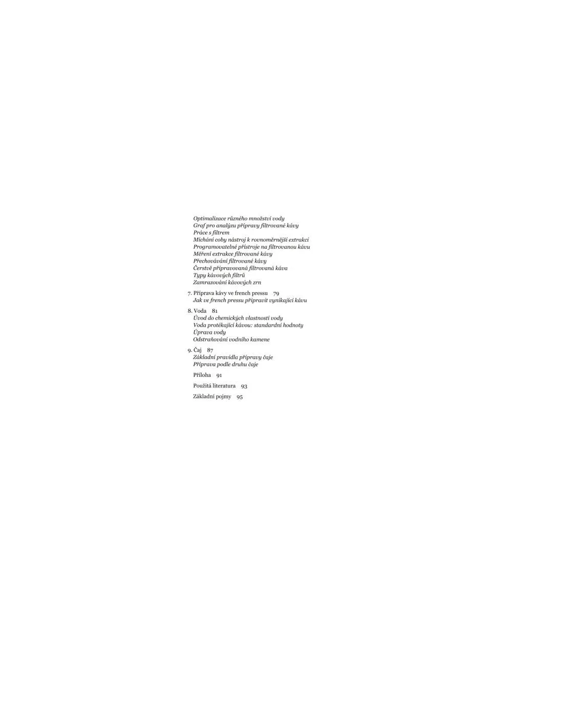 Na 100 stranách Scott popisuje praktické, exaktní a několika desítkami let zkušeností prověřené informace o přípravě kávy v komerčním i domácím prostředí. Autor se věnuje espressu, filtrované kávě, ale i problematice mletí a vodě. Tato kniha je nutností pro všechny, kteří to myslí s přípravou kávy vážně.