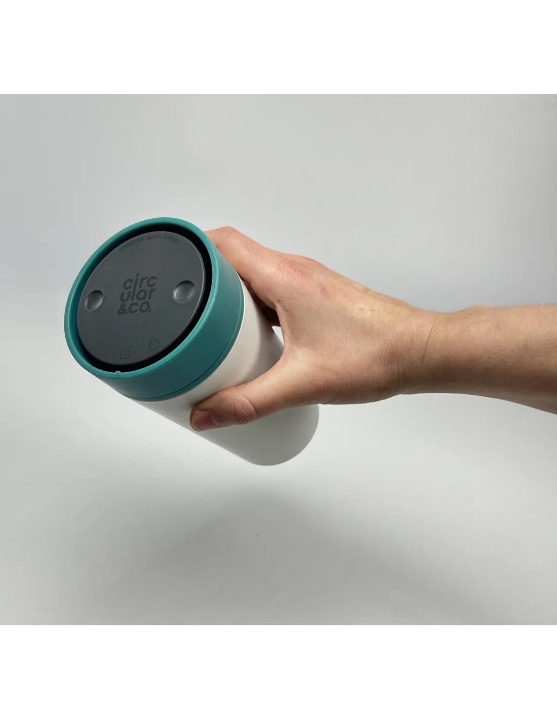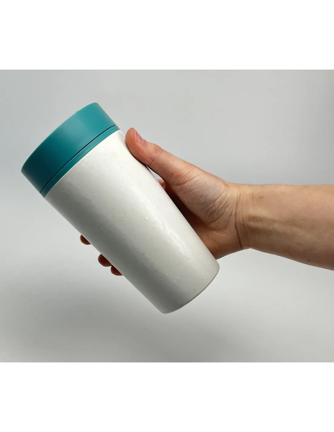 Stylový rcup kelímek z recyklovaných materiálů, praktický a pohodlný na používání. Elegantní kombinace barev Chalk a Aquamarine pro udržitelný a moderní design. Nově uzamykatelné!