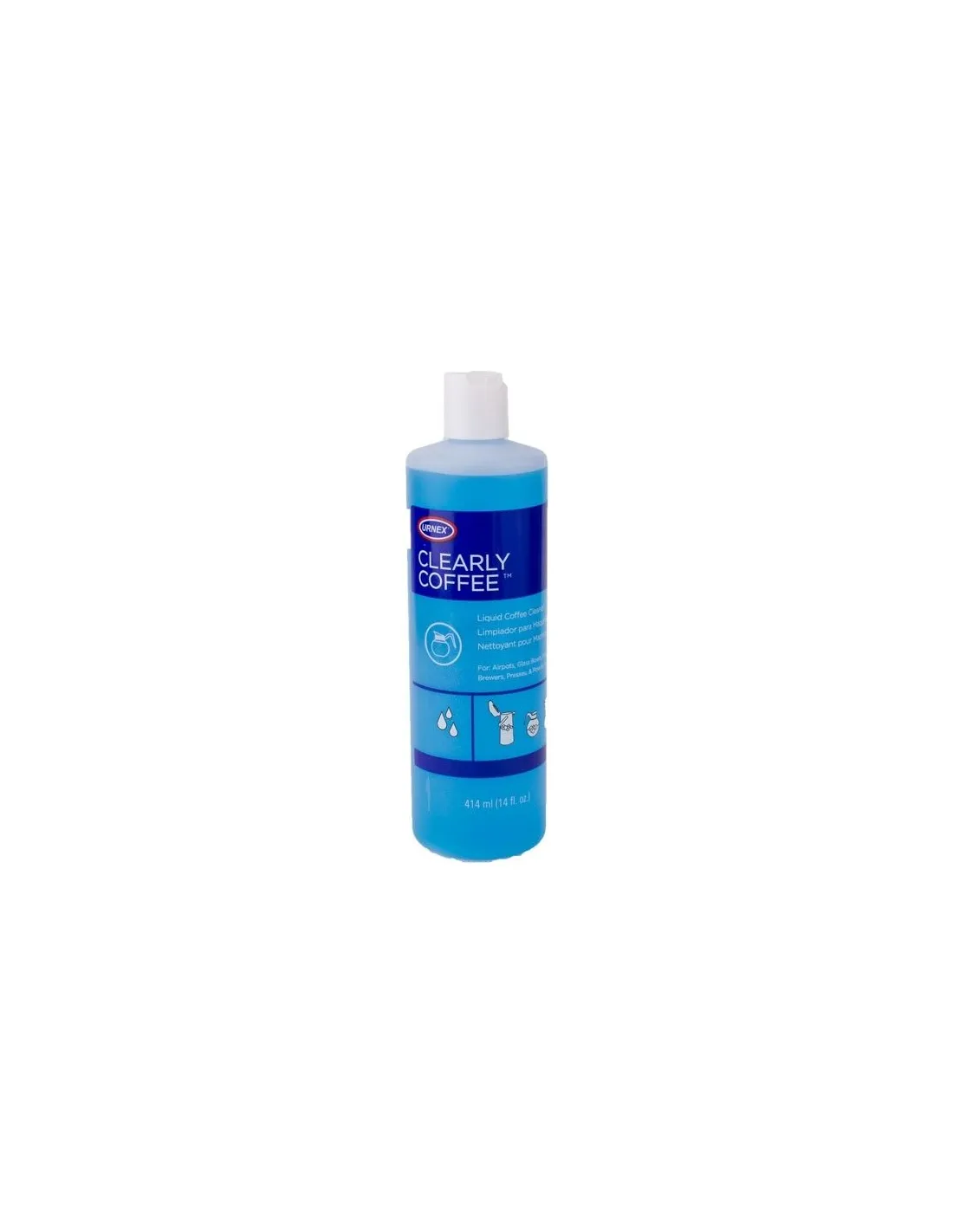 Čistící přípravek Clearly Coffee od americké značky Urnex pro odstranění kávových olejů a usazenin z kávovarů či skleněných nádob. Objem 414ml.