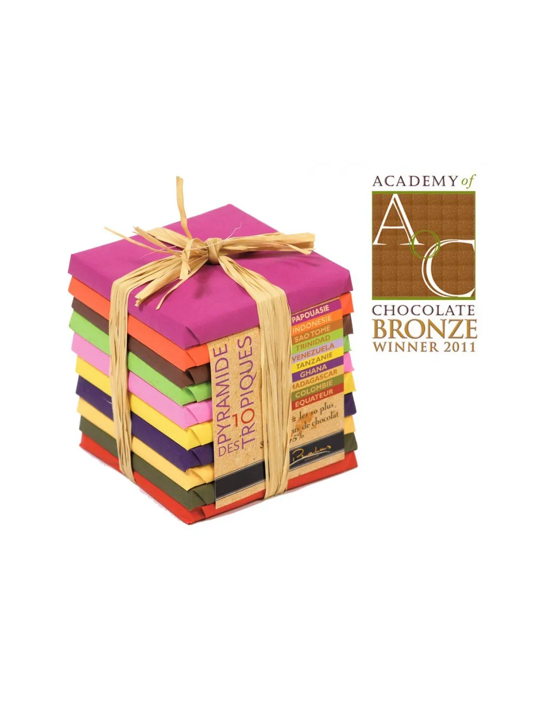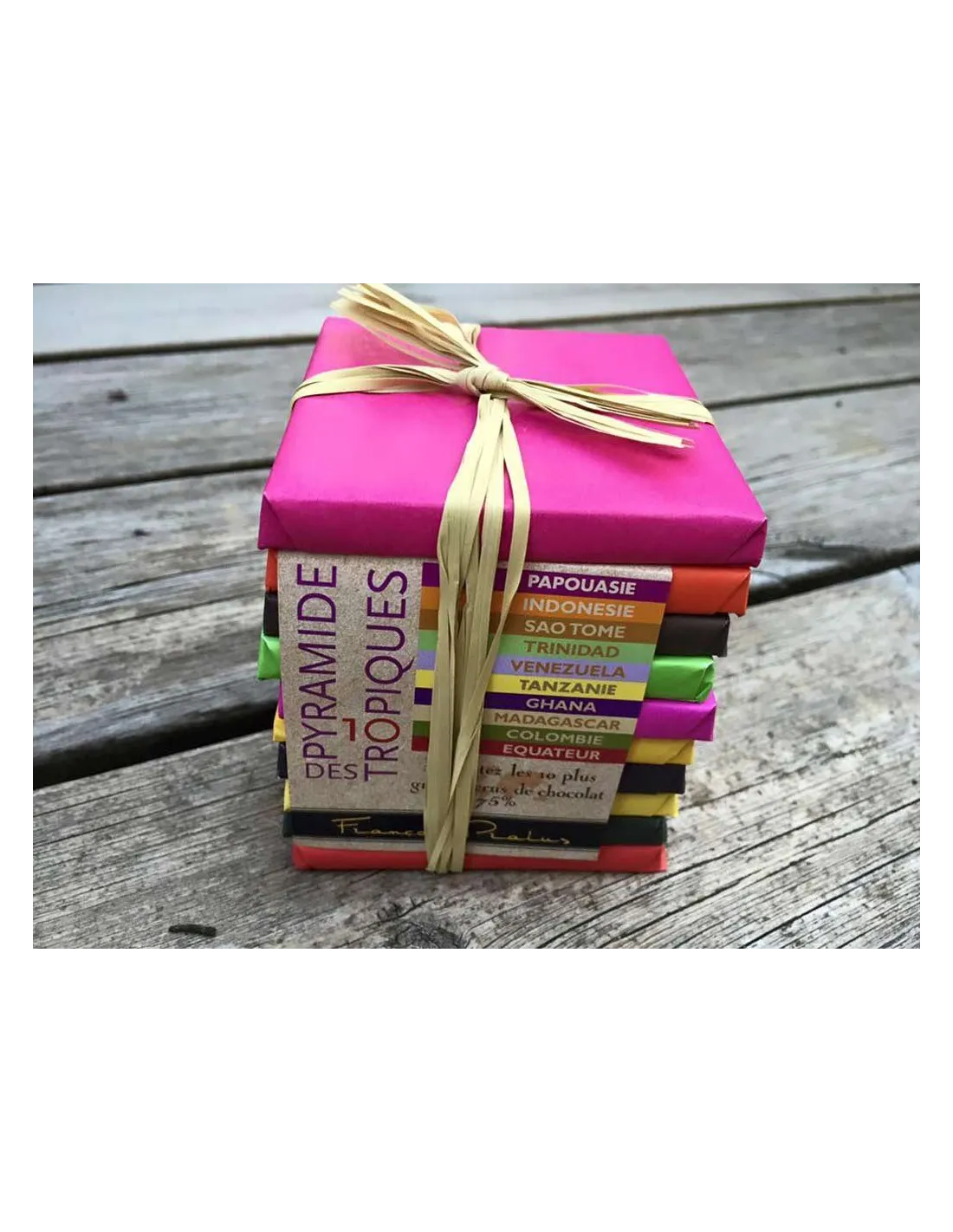 Vydejte se na čokoládovou cestu kolem světa. Degustační sada obsahuje 10 druhů jedno-oblastních (single-origin) 75% čokolád Francois Pralus. V této degustační sadě si vychutnáte rozdíly mezi jednotlivými odrůdami kakaových bobů (Criollo, Trinitario a Forastero) a porovnáte chuť čokolád z různých oblastí světa.