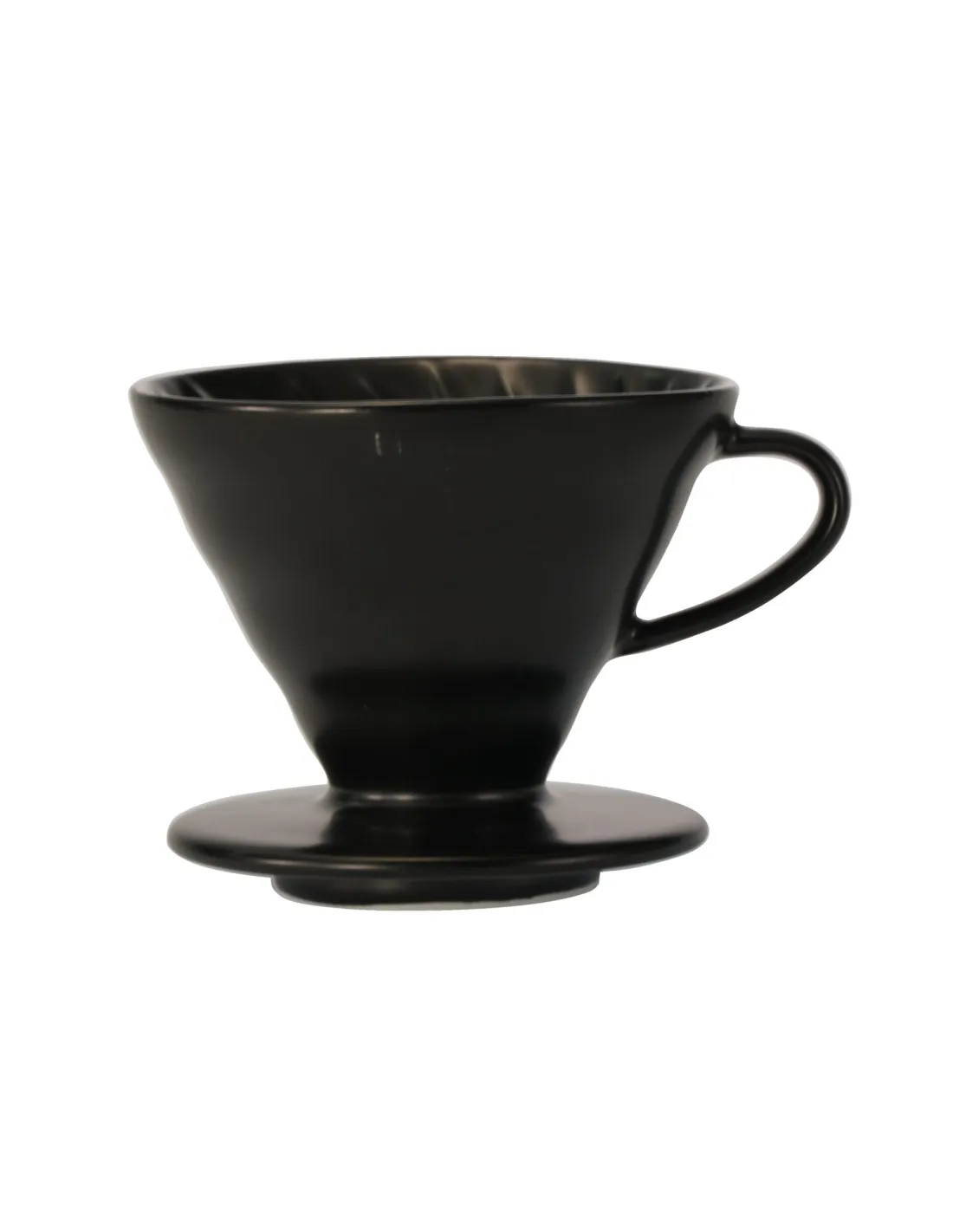 Keramický dripper Hario V60 pro dokonalou přípravu 1-4 šálků filtrované kávy. Barva: matná černá.