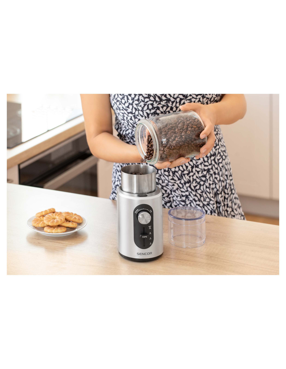 Tento elektrický mlýnek na kávu je skvělou volbou pro všechny milovníky čerstvé kávy. Díky speciálnímu titanovému tříštivému noži zajistí rovnoměrné a precizní mletí, a to nejen kávy, ale i ořechů, bylin nebo koření. Automatická funkce umožňuje snadné nastavení požadované hrubosti mletí i počtu šálků, takže vždy připravíte přesné množství, které potřebujete.