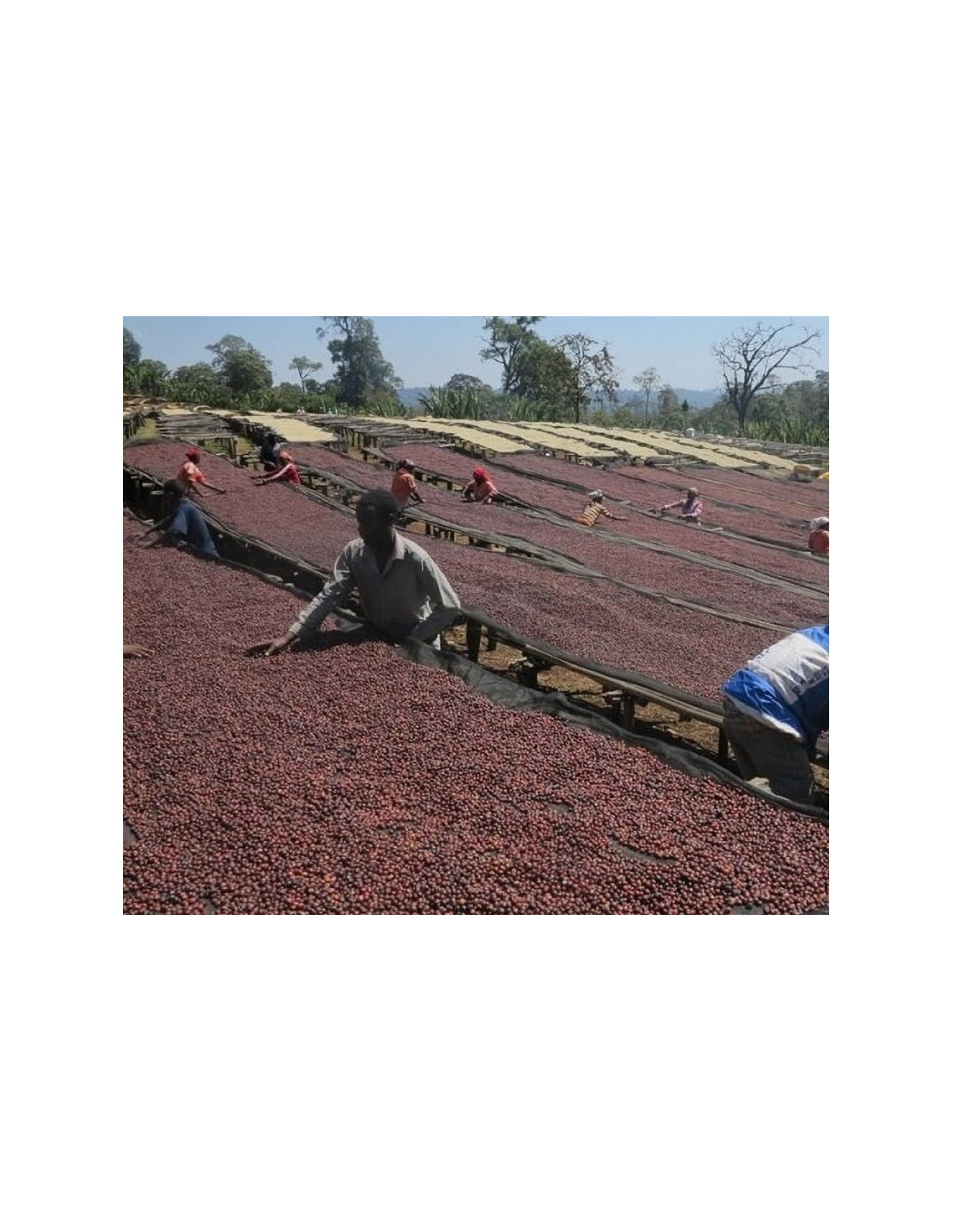 Ndundu PB z keňského okresu Kiambu je ukázkou precizní práce družstva Thiririka FCS. Farmáři zde dodržují přísná pravidla pěstování, sklizeň probíhá výhradně ručně a každá třešeň musí být ještě tentýž den doručena na zpracovatelskou stanici. Následuje pečlivé třídění ve floatačních nádržích a klasický keňský fully-washed proces: fermentace, důkladné promytí a pomalé sušení na afrických postelích.