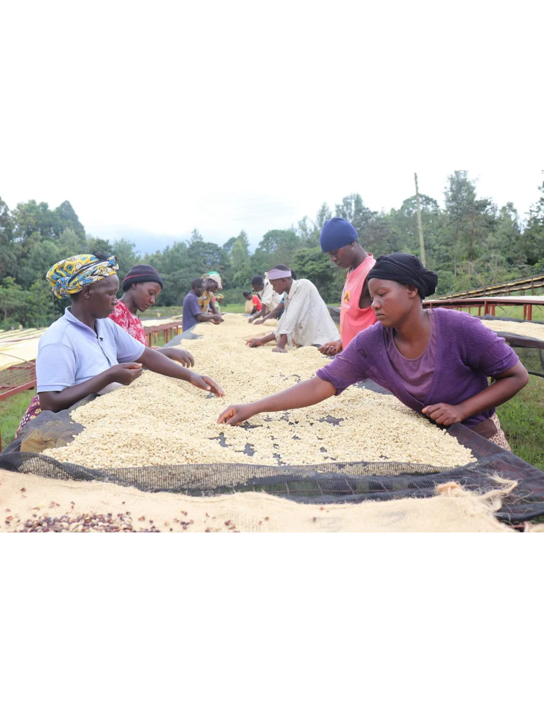 Zpracovatelský závod Mutitu funguje už od roku 1963. V dnešní době zajisťuje zpracování pro 1250 členů kooperativy, kteří ovšem většinou vlastní pouze přibližně pětinu hektaru půdy. Všichni však působí v samotném srdci slavného regionu Kirinyaga a to dokonce na úpatí druhé nejvyšší hory Afriky – Mount Kenya. Navíc díky vulkanickému podloží mají všechny místní kávovníky dostatečný přísun minerálních živin. Po tradičním keňském dvojitém promytí na vás tedy nyní čeká úžasný lot perlových zrnek s charakterem černého rybízu a citrusů. Samotná perlová zrnka vznikají tak, že se v třešni vyvine místo dvou zrnek pouze jedno, které je menší a kulatější – připomínající perličky! Mutitu jsme minulý rok sami vybrali v laboratoři Dormans Coffee v Nairobi. Díky vakuovému balení zeleného zrna je stále stejně šťavnatá, jako když jsme ji ještě v Keni poprvé ochutnali.