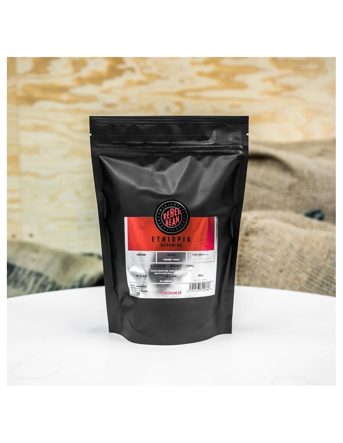 Výjimečná výběrová a čerstvě pražená káva Ethiopia Duromina z brněnské pražírny Rebelbean. Transparentní původ. Aktuální sklizně. Vždy čerstvě pražené.