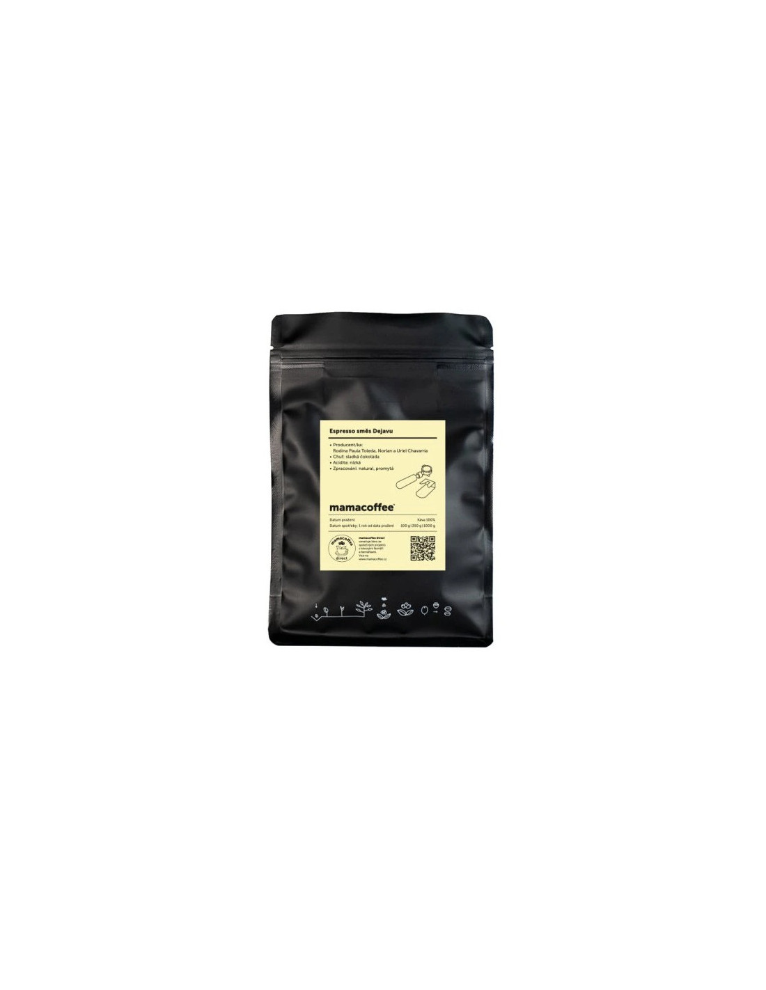 Směs 100% arabik Dejavu s vyrovnanou chutí čokolády, je pečlivě sestavená pro ideální espresso. Hodí se také na přípravu v moka konvičce a v džezvě.