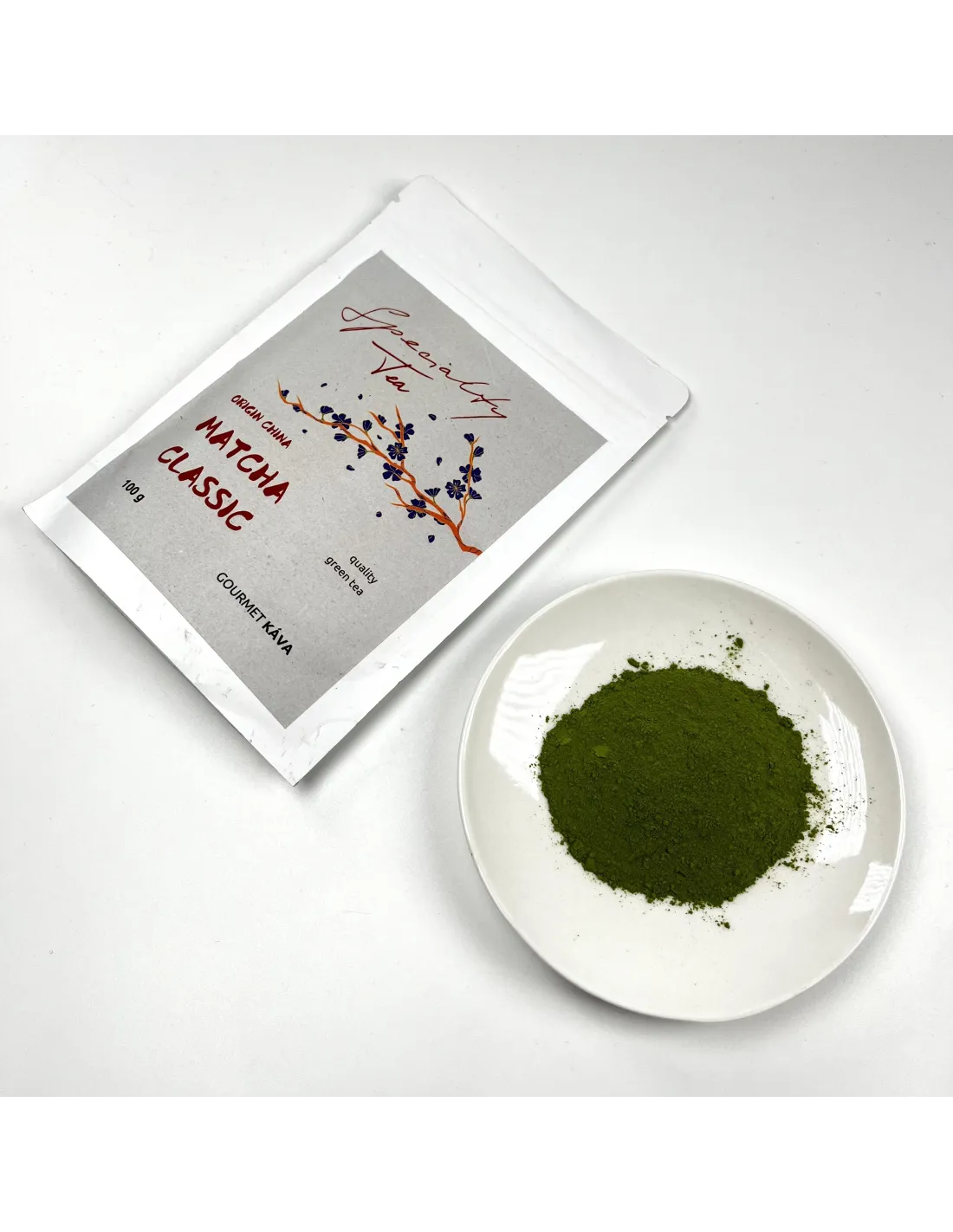 Specialty Tea – Matcha Classic je kvalitní práškový zelený čaj ideální pro každodenní pití. Na výrobu prášku se používají lístky z nižších částí čajovníku nebo směs lístků různého stáří. Sběr může být taktéž částečně mechanizovaný. Chuť je mírně výraznější a lehce hořká, méně jemná, což je vhodné pro vaření nebo míchané nápoje.