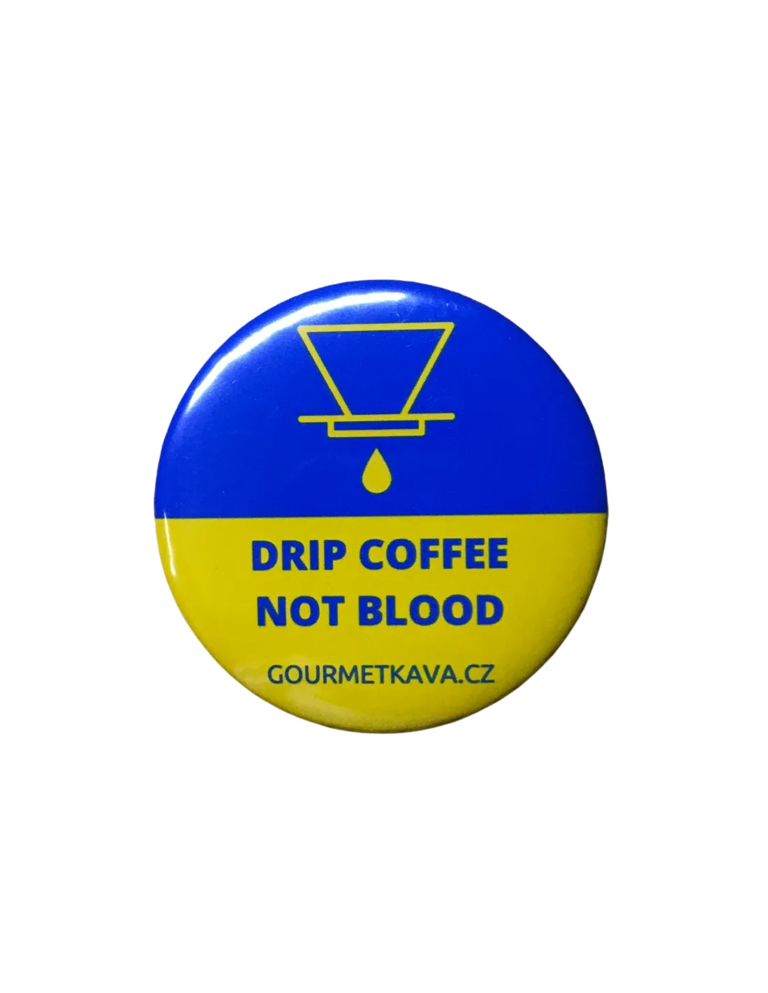 Zakoupením placky DRIP COFFEE NOT BLOOD přispějete na jednu z největších humanitární sbírek pro Ukrajinu, kterou pořádá organizace Člověk v tísní.