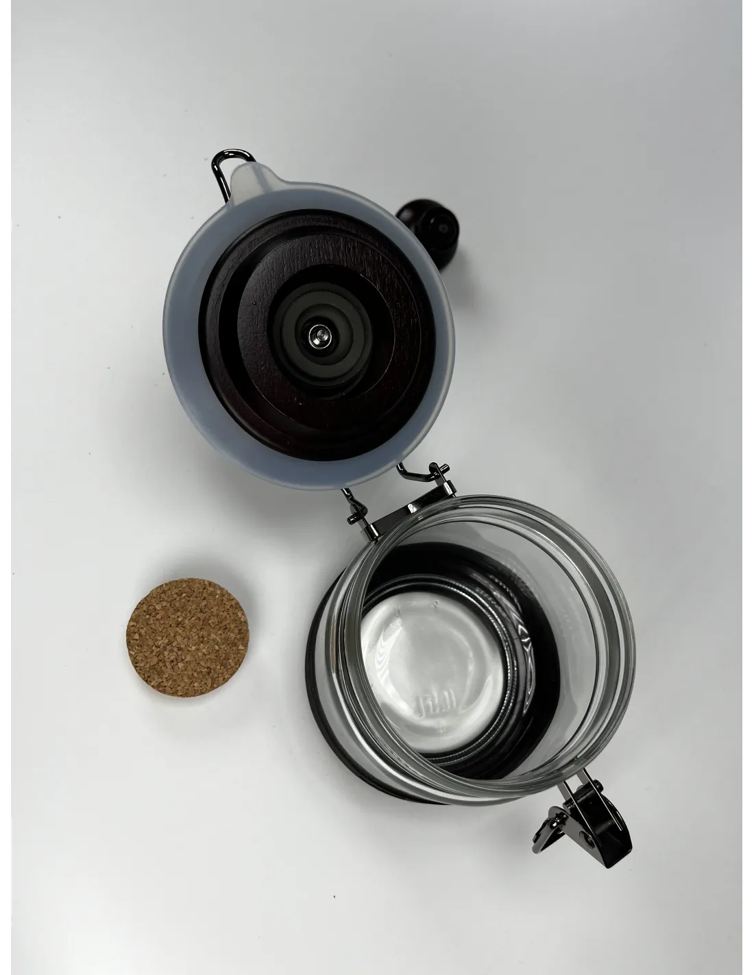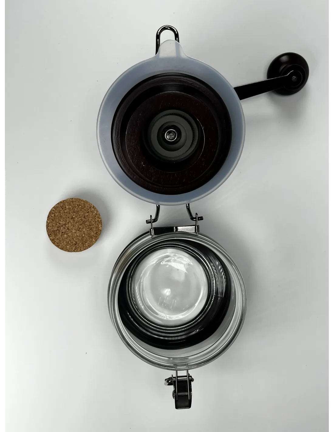 Čím tento mlýnek skutečně vyniká je velká spodní skleněná nádoba, která může sloužit pro uskladnění namleté kávy. Pokud si chcete namlet kávu na celý den i příští ráno, nebo jste jednoduše namleli příliš mnoho, můžete ji uchovat právě ve spodní nádobě. Ta je k mlýnku připevněna pomocí těsnící gumy, která zajišťuje, že Vám zde káva vydrží dlouho čerstvá a voňavá. Vylepšením nového modelu Canisteru je praktické víčko, která můžete nasadit a při mletí Vám kávu nebude vyskakovat z mlýnku ven.