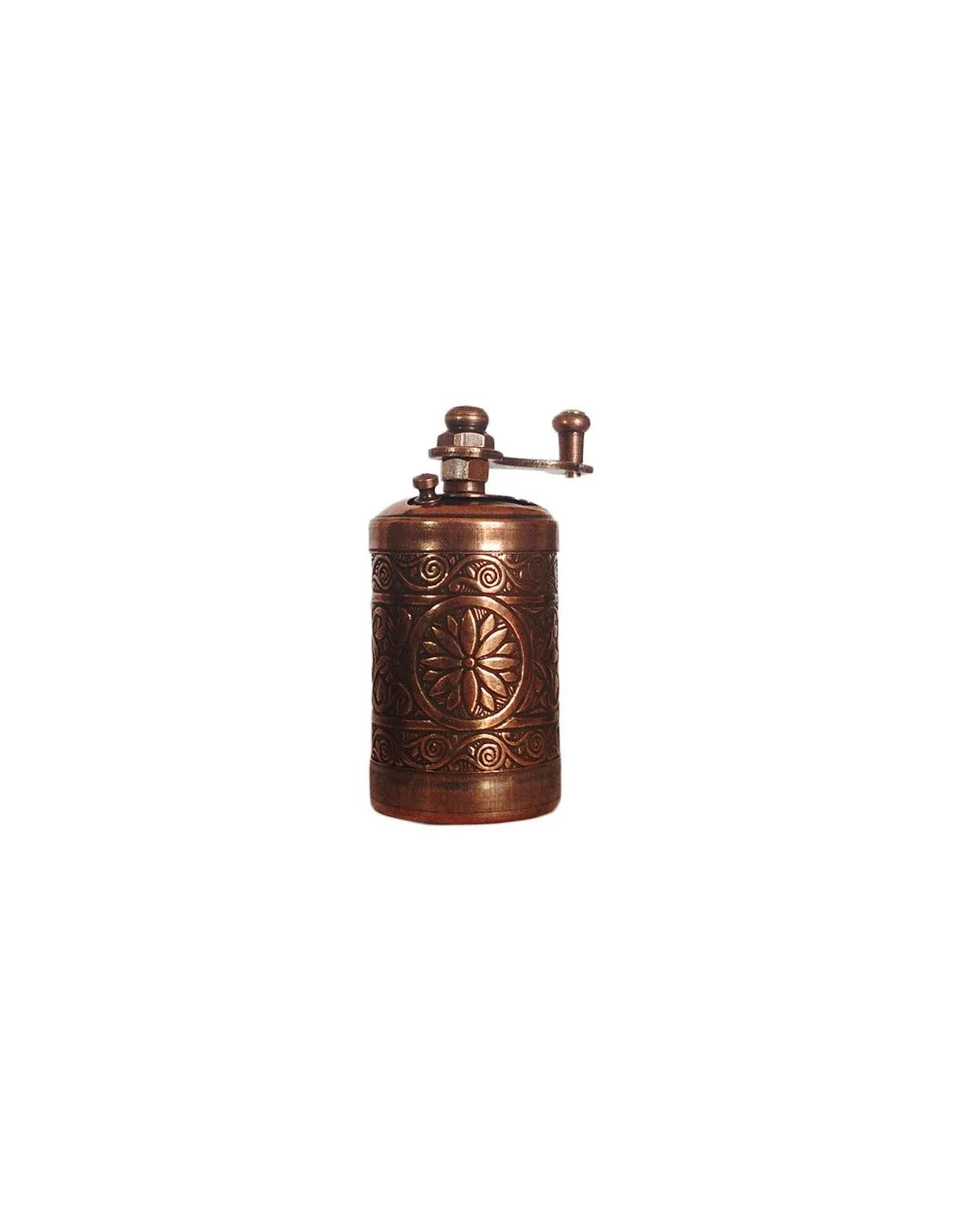 Ruční mlýnek na pepř a jiné koření z řady Istanbul v krásném tradičním tureckém stylu. Mlýnek je zhotoven z mosazi měděné barvy, mlecí ústrojí je kovové. V horní části jsou otevíratelná dvířka na vsypání koření a ve spodní části mlýnku je kryt, který lze po použití nasadit. Certifikace ISO 9001 napovídá o kvalitním zpracování od tradičního tureckého výrobce. Krásnou kombinaci můžete vytvořit spolu s naším tureckým mlýnkem na kávu ve stejném provedení.