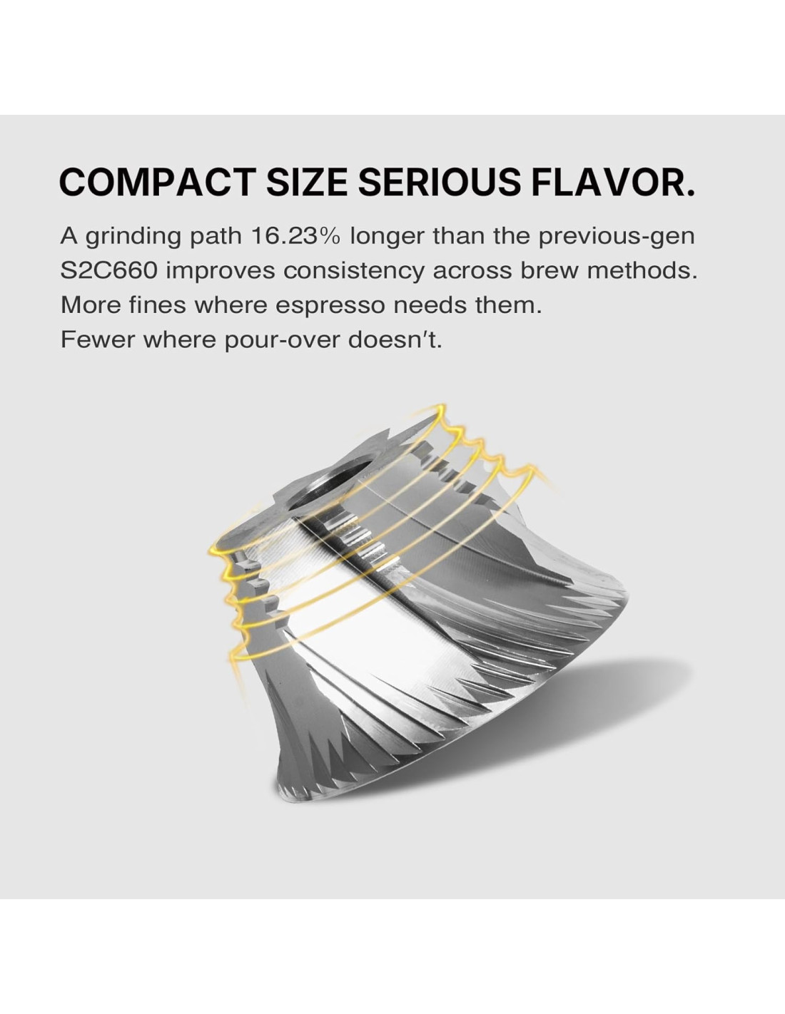 Timemore C5 ESP PRO je profesionální ruční mlýnek pro espresso s novou generací mlecích kamenů, plynulým nastavením a špičkovou přesností. Kombinuje výkon, eleganci a kompaktní design – ideální společník pro domácí i cestovní espresso přípravu.