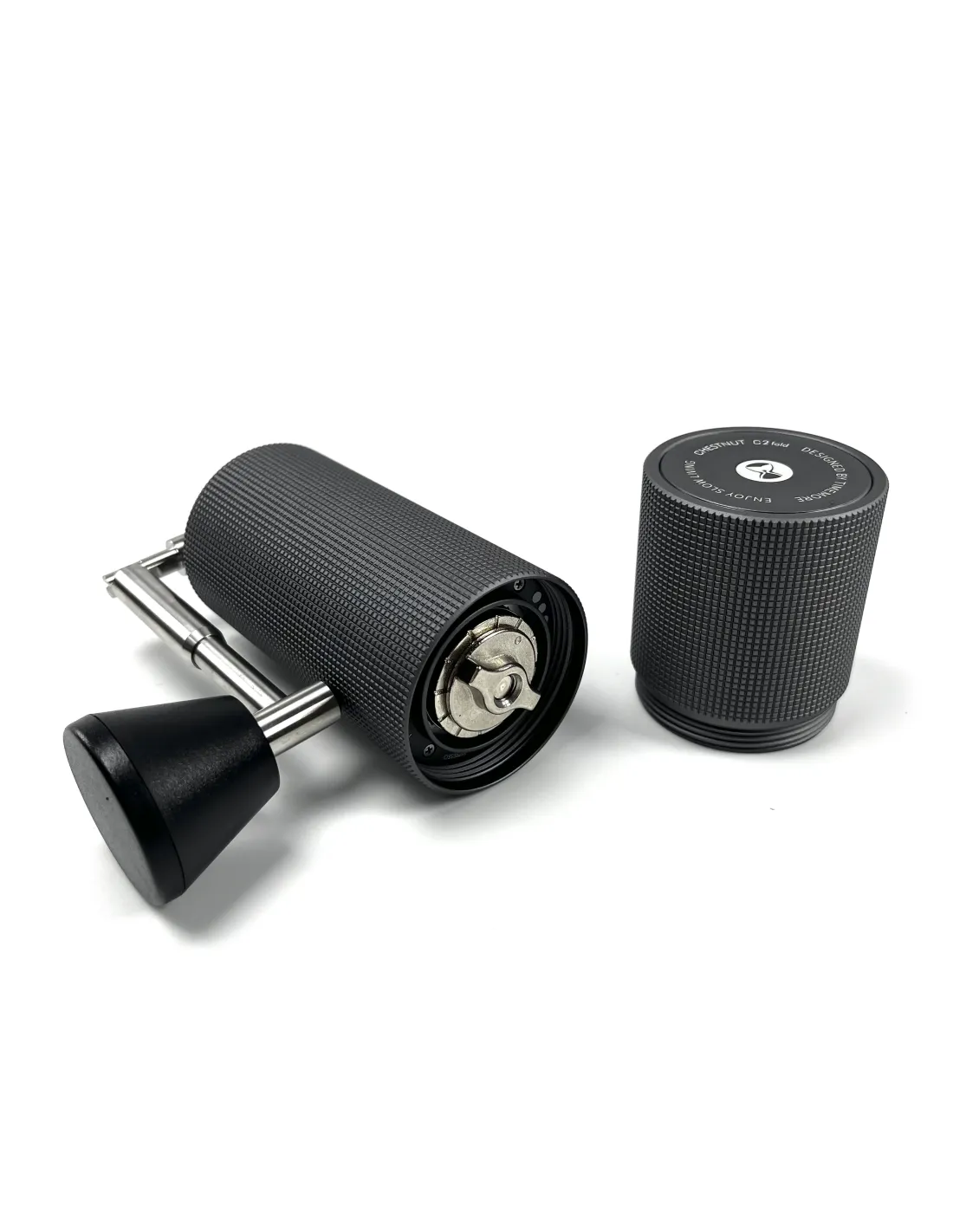Precizně zpracovaný ruční mlýnek Timemore Chestnut C2 Fold. Ideální pro ty, kteří hledají lehký a zároveň kvalitní mlýnek. Tato vylepšená verze disponuje praktickou skládací rukojetí.