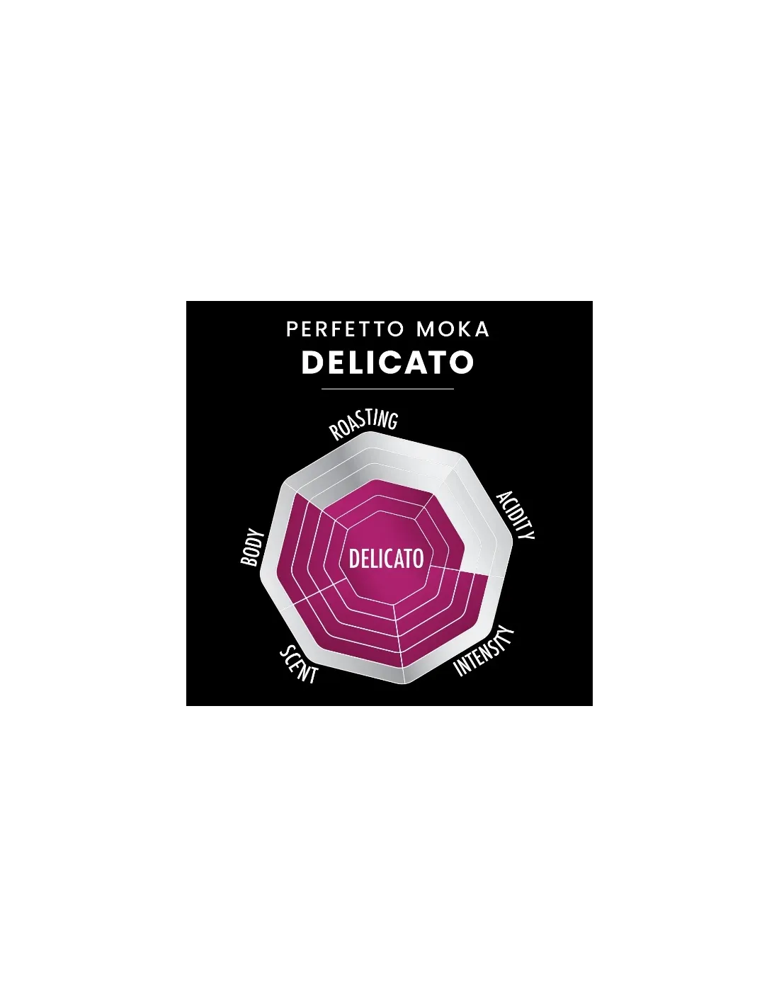 Bialetti Perfetto Moka Delicato je káva ideální pro moka konvičku, s jemnou, vyváženou chutí a tóny oříšků a sušeného ovoce.