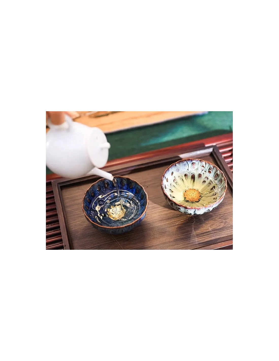 Stylová sada šálků Kaffia Blossom s ručně vyráběným designem inspirovaným květinovými motivy. Na dně každého šálku se nachází jemný motiv lotosu, který nejlépe vynikne při nalití světlého nebo čirého čaje.