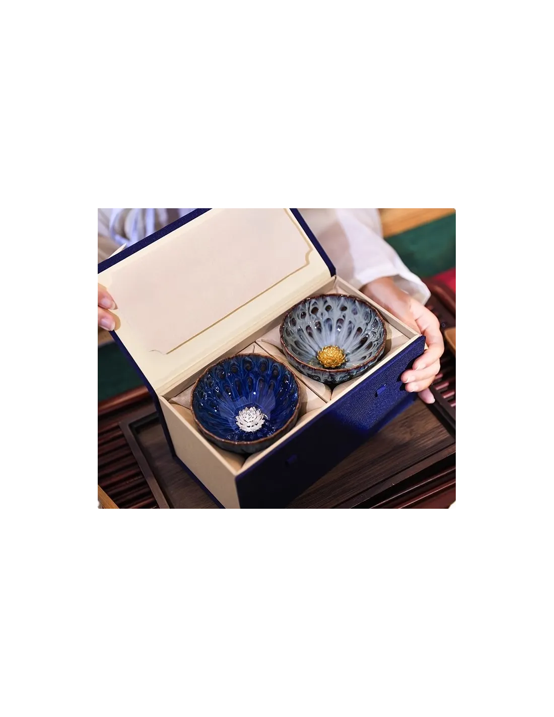 Elegantní sada dvou šálků Kaffia Blossom v čínském stylu, balená v luxusní dárkové krabičce.