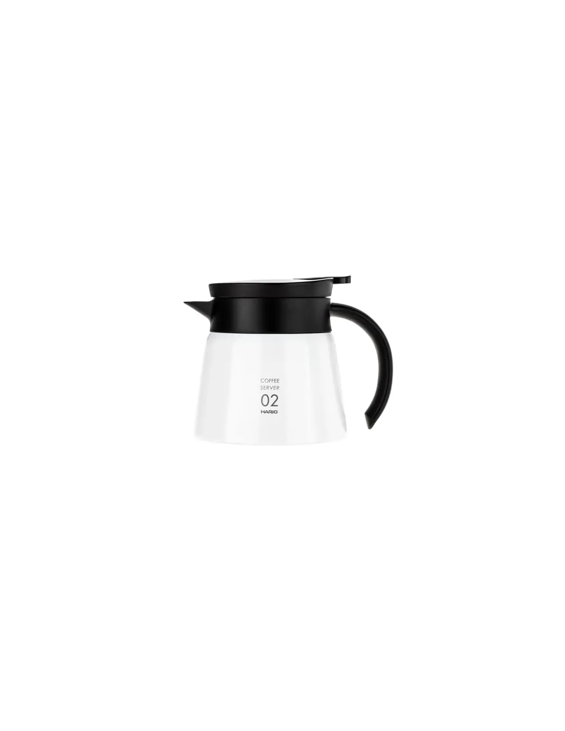 Dvoustěnná vakuově těsněná termo konvice Hario V60 Thermo server z nerezu pro profesionální servírování čerstvé a teplé kávy, či jiných nápojů. Objem: 600ml.