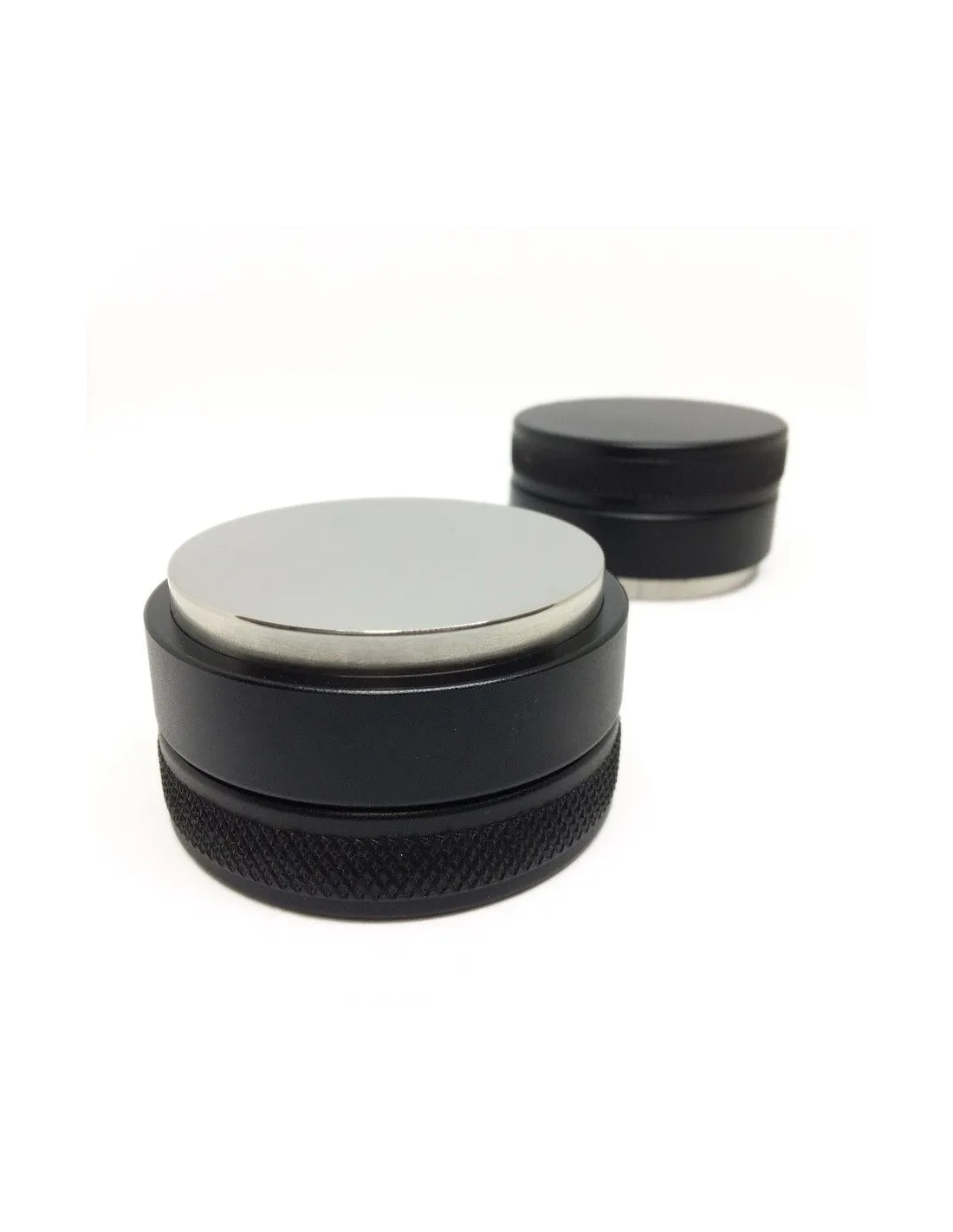 Profesionální tamper neboli pěchovadlo na kávu s nastavitelnou hloubkou nerezové základny.