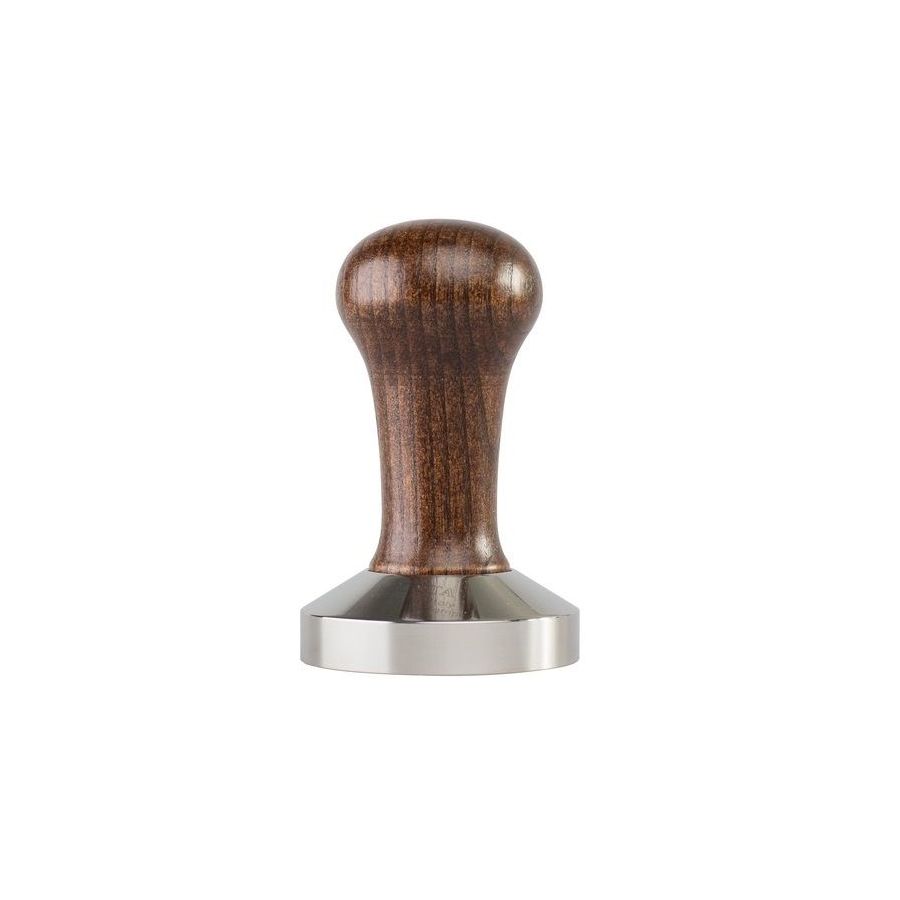 Profesionální tamper neboli pěchovadlo na kávu Motta s nerezovou základnou a dřevěnou rukojetí. Průměr: 58.4mm.