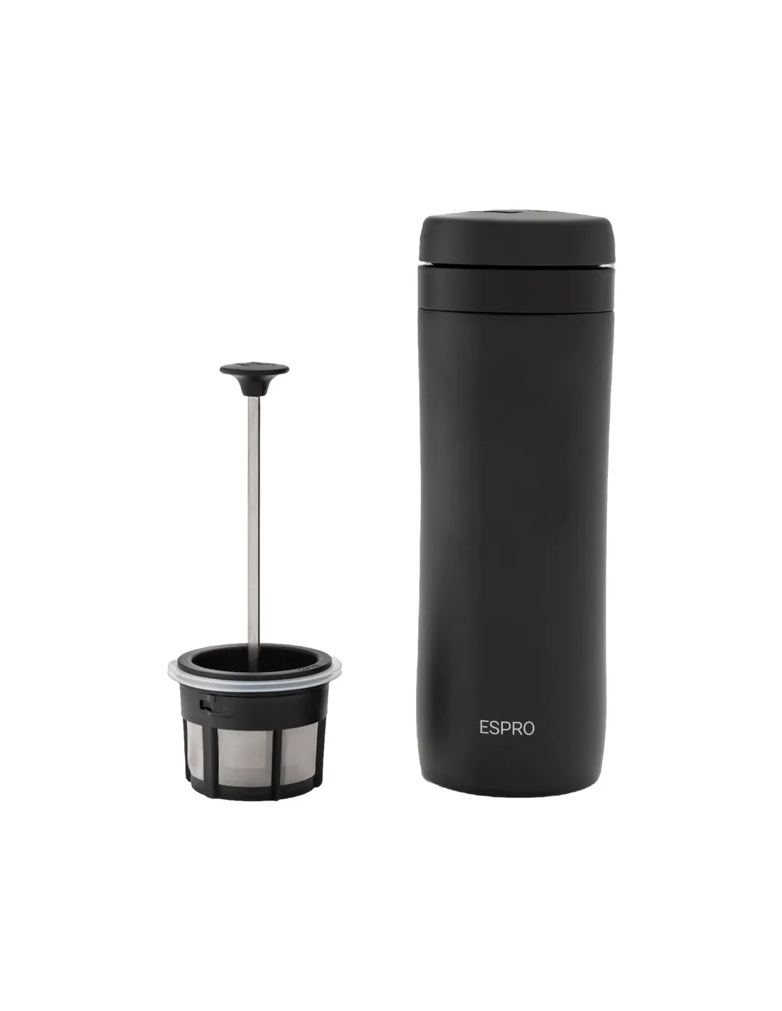 Nerezový dvoustěnný Espro Travel Press pro přípravu frenchpress kávy kdekoliv na cestách. Patentovaný dvojitý mikro-filtr zajistí bohatou chuť bez kávové sedliny. Samotná termoska 450ml.