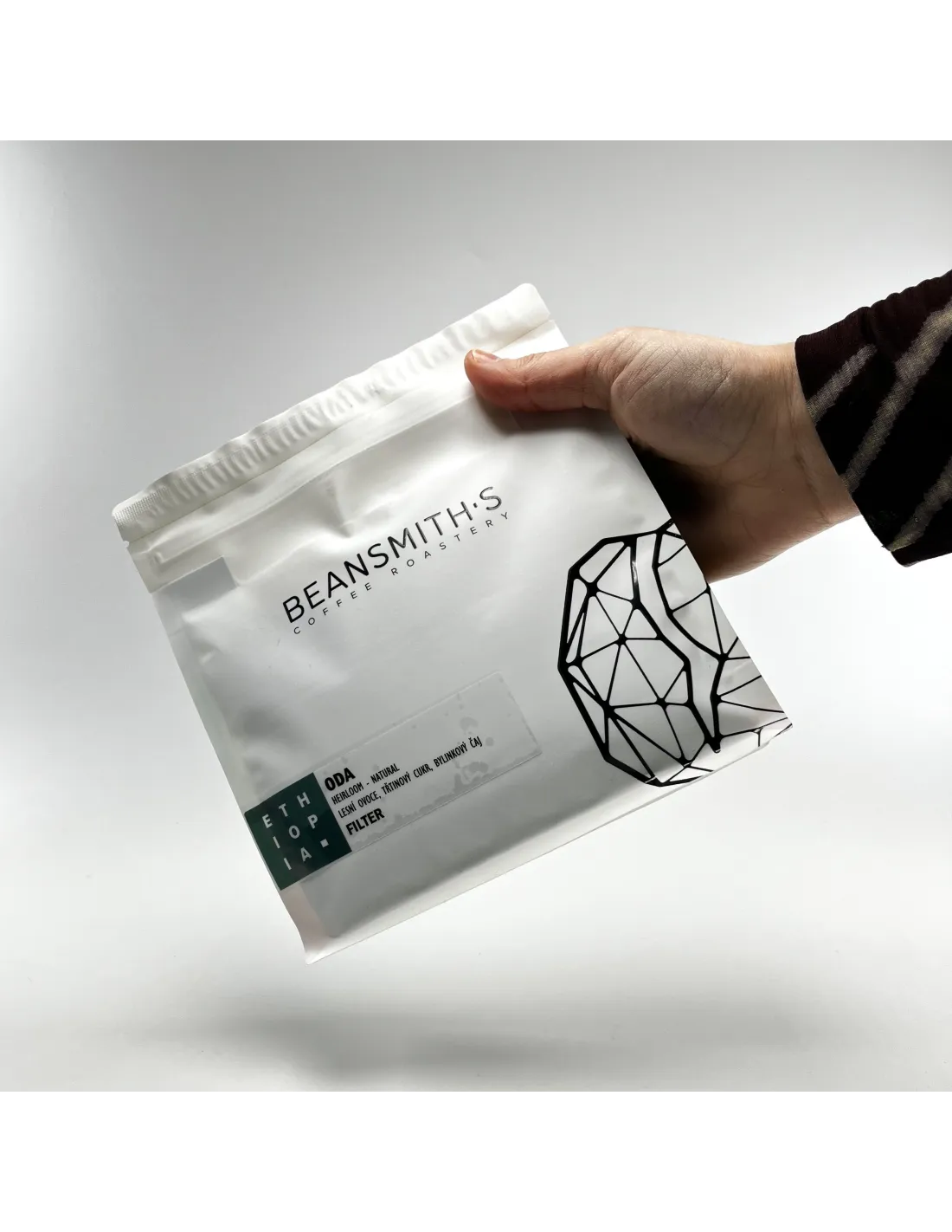 The Oda washing station in Uraga, Guji (Oromia), is located at high altitude where coffee grows in the shade of native forests. Around 1,800 small farmers supply their cherries, for which they received 35% more than average this year. This lot is a mix of Ethiopian Heirloom varieties, comprising hundreds of coffee trees. After hand sorting, the cherries are dried on African beds for approximately 20 days. Uraga offers beautiful landscapes and exceptional flavours.
