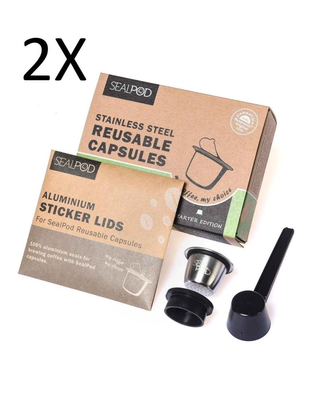 2x packs of 1 refillable Sealpod capsules for Nespresso ® coffee machines. Stickers included! Always keep one capsule in reserve when the other is in the "machine" ;-)