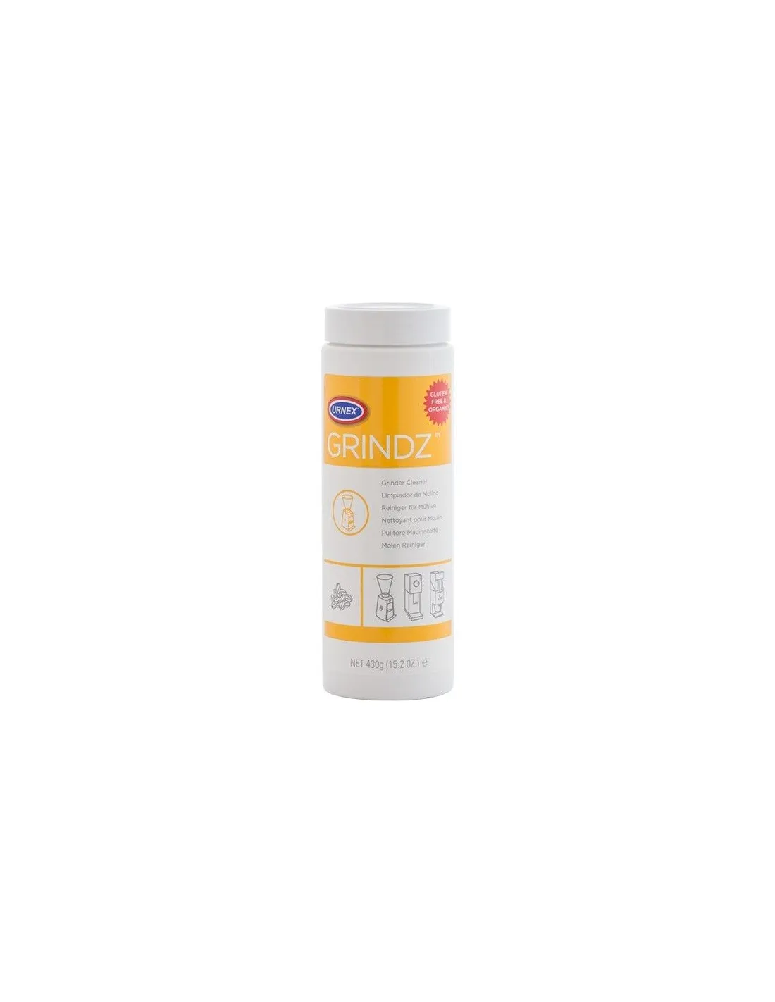 Patented Urnex Grindz product for safe and thorough cleaning of coffee grinders from coffee oils. Content: 430g of cleaning mixture.
