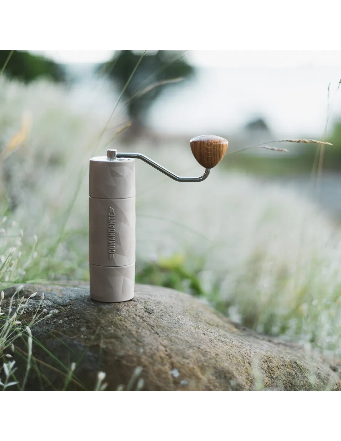 When designing an outdoor grinder, choosing the best material for the body is crucial. After comprehensive research in the labs and extensive field testing, Comandante engineers selected a material called QTP®, a specially reinforced high-silicon technopolymer, for the new line of outdoor products. QTP® is a high-performance technopolymer with a significant amount of quartz reinforcement particles in a flexible and strong long-chain polymer matrix. It resembles ceramic to the touch and functions as a technical supercomposite.