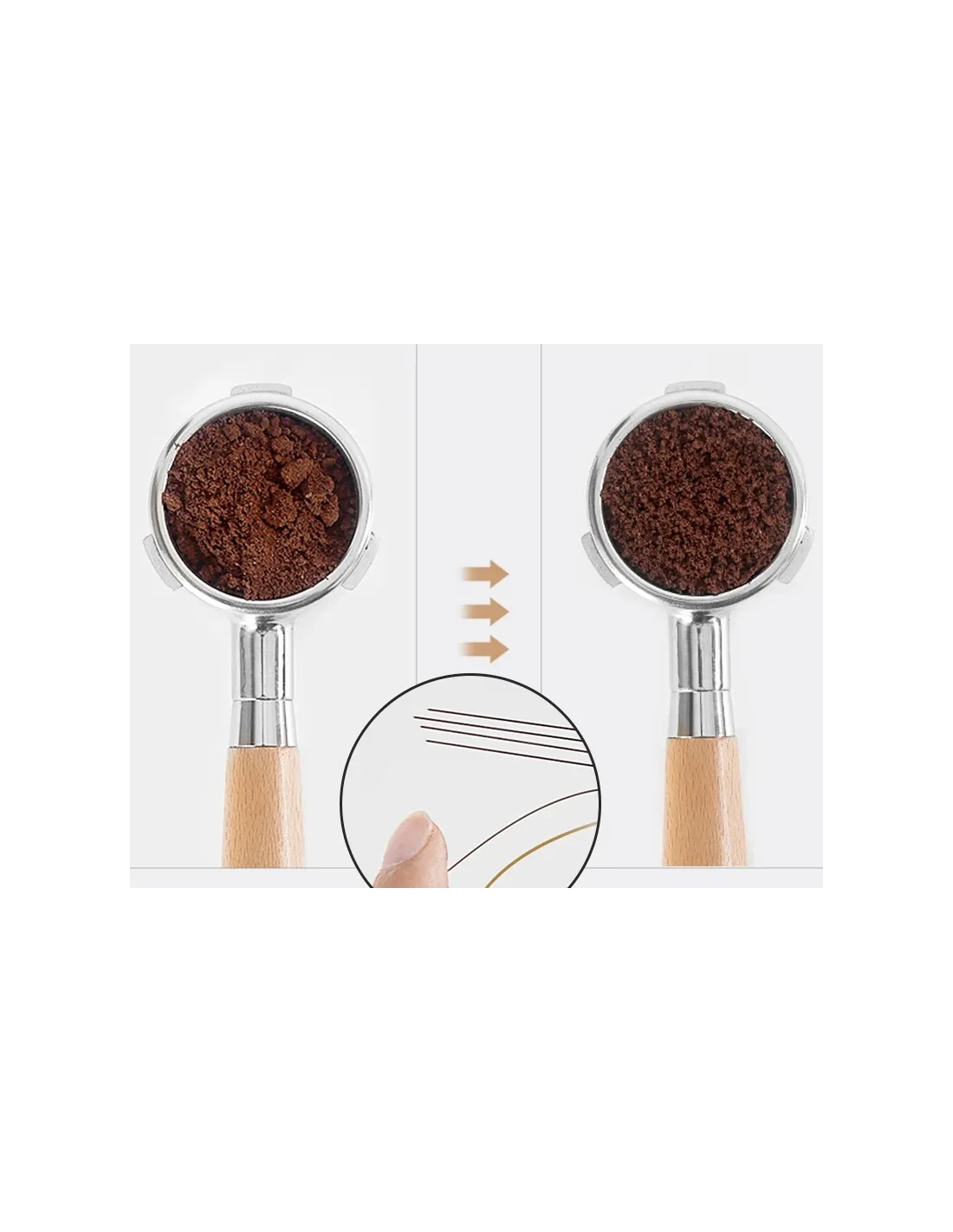 Needle distributor (WDT) for even coffee distribution in the lever.