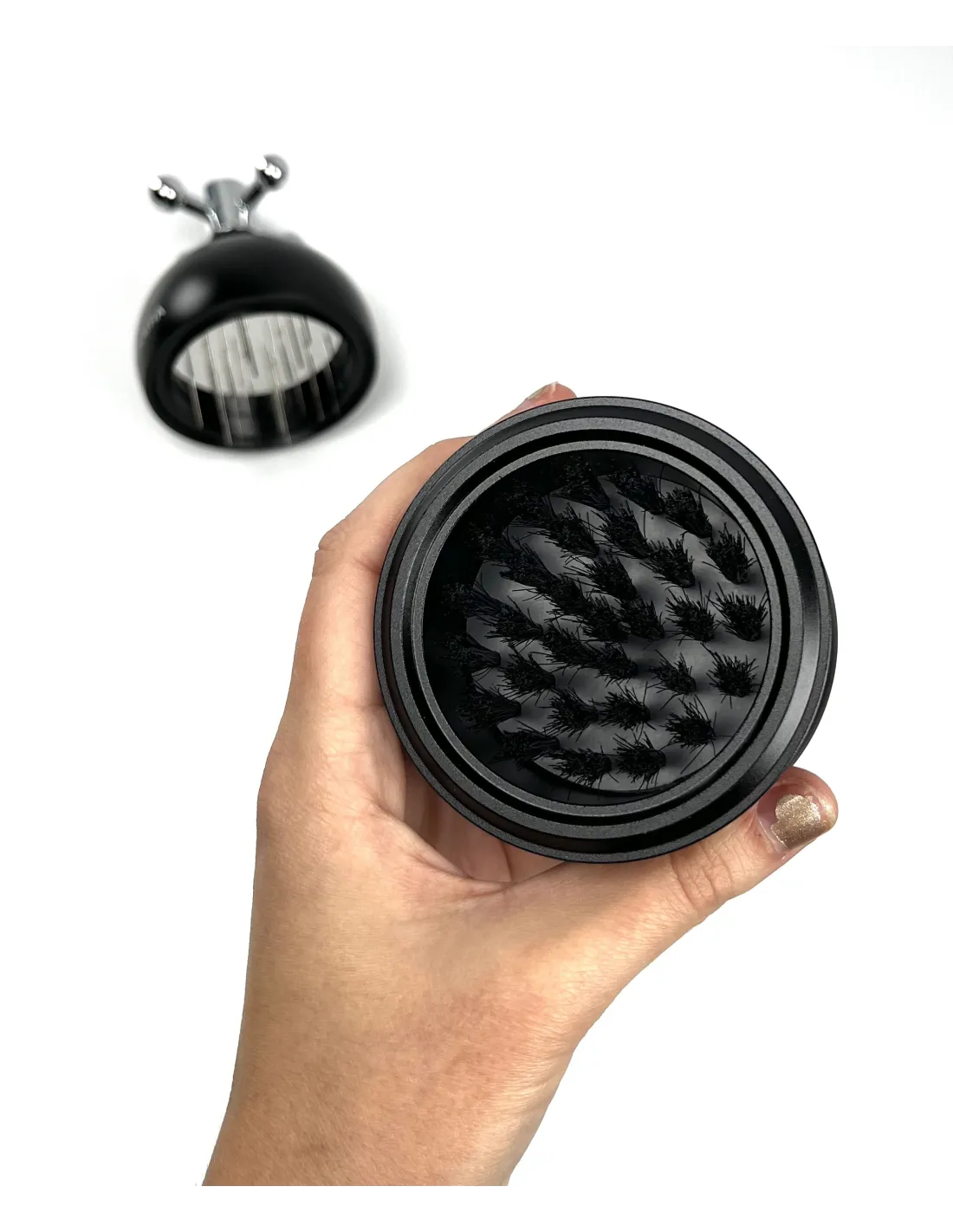-Theupper part houses the needle distributor, where you can adjust the length of the needle according to your preference and the depth of the precision basket.