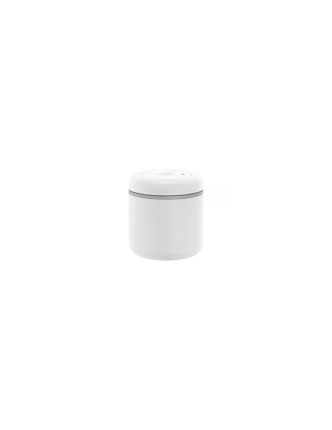 Fellow Atmos in white is a vacuum container for coffee beans. It is durable, airtight, prevents oxidation and extends the shelf life of coffee by up to 50%. Its big advantage over other vacuum containers is the integrated pump - just twist the lid back and forth to remove the air from inside, without the need for an additional pump.