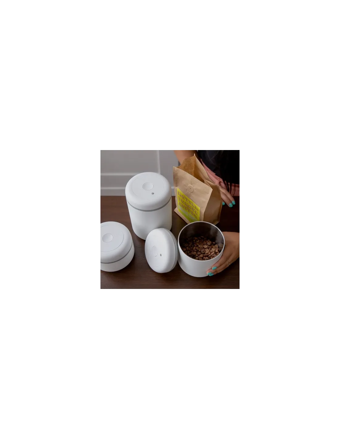 The Fellow Atmos vacuum canister is ideal for storing coffee as it prevents air from entering, helping to preserve its freshness and aroma for longer. It features an integrated pump that enhances this function.