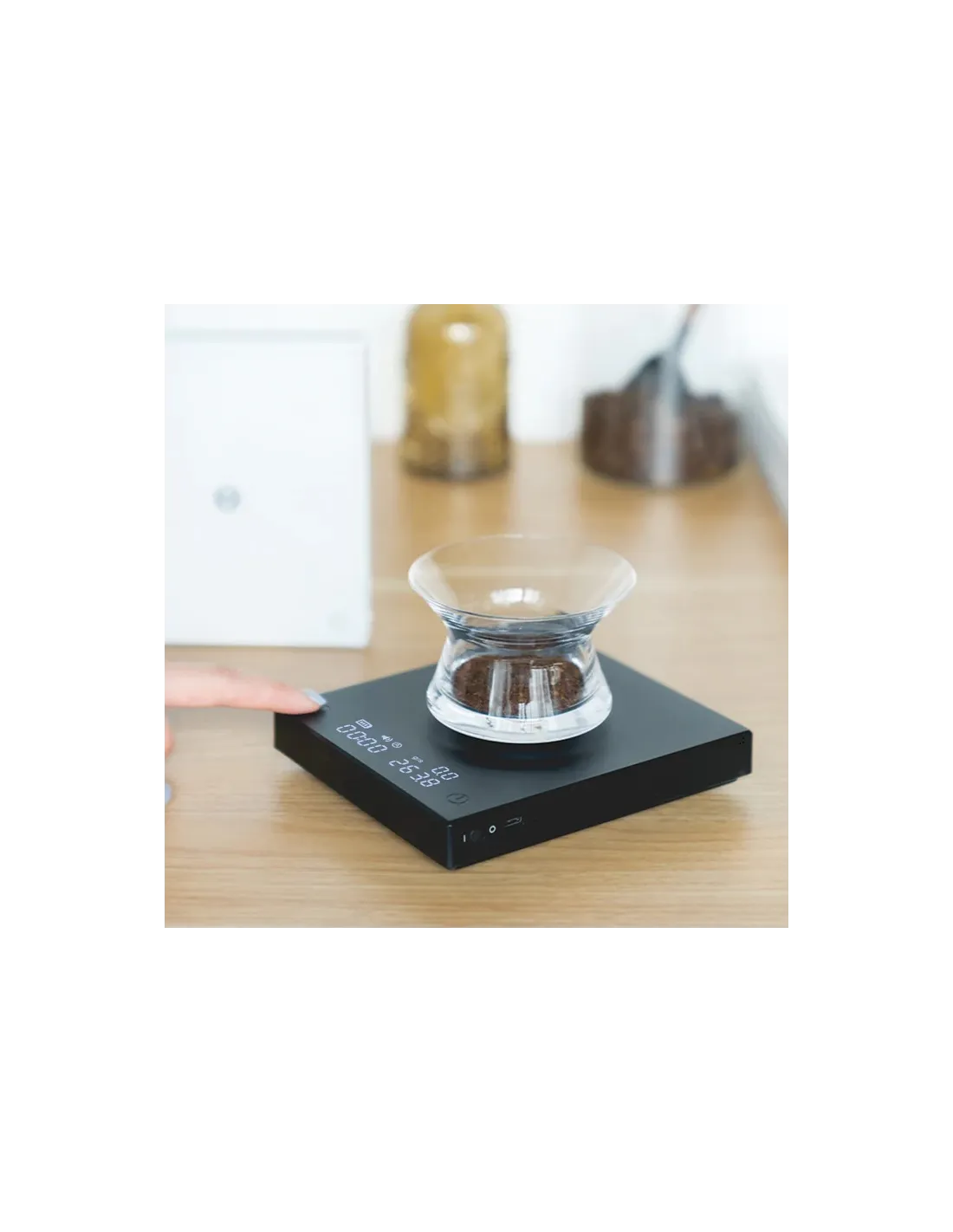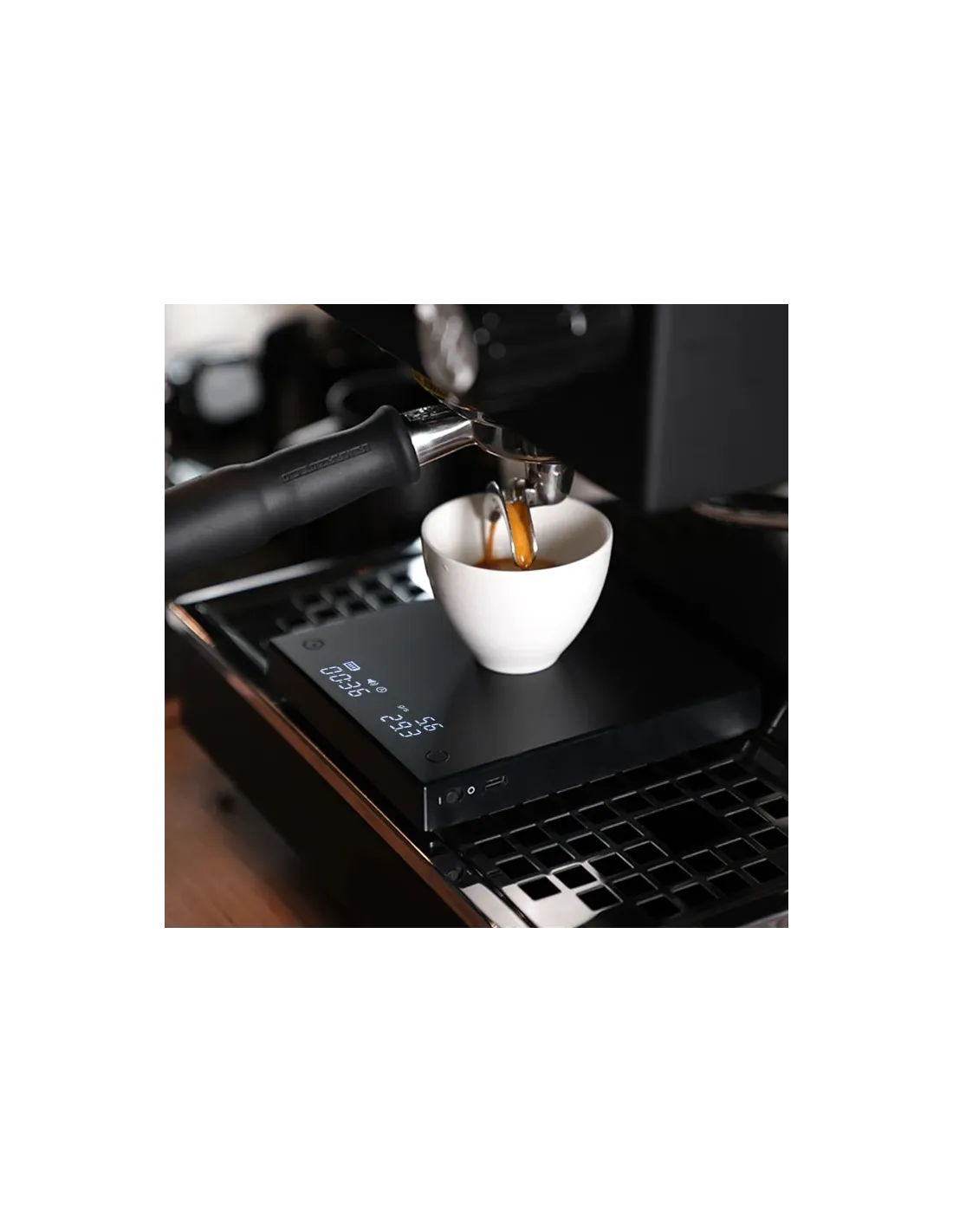 The new model of the stylish Timemore Mirror Basic PRO digital scale in black with minimalist features and elegant design is the ideal assistant for home and professional espresso preparation or for pour-over methods such as Chemex, dripper or AeroPress.
