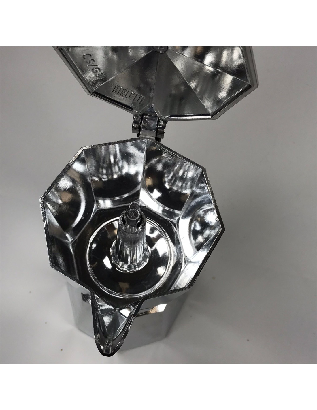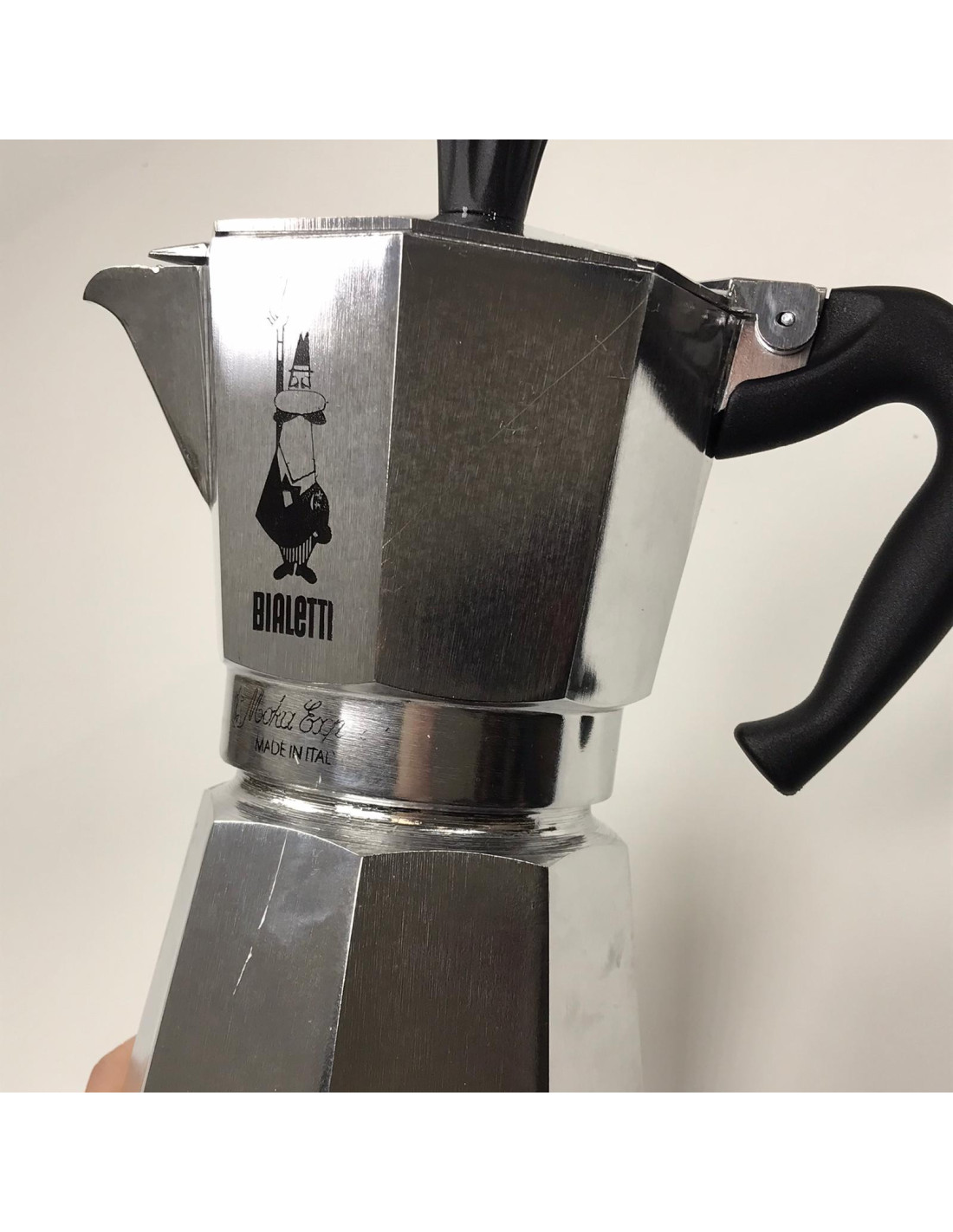 The legendary Bialetti Moka Express moka pot from the Italian company Bialetti for the traditional preparation of stronger coffee. Suitable for 6 6 cups, i.e. approx. 270ml. COSMETIC DEFECT / DISCOUNT