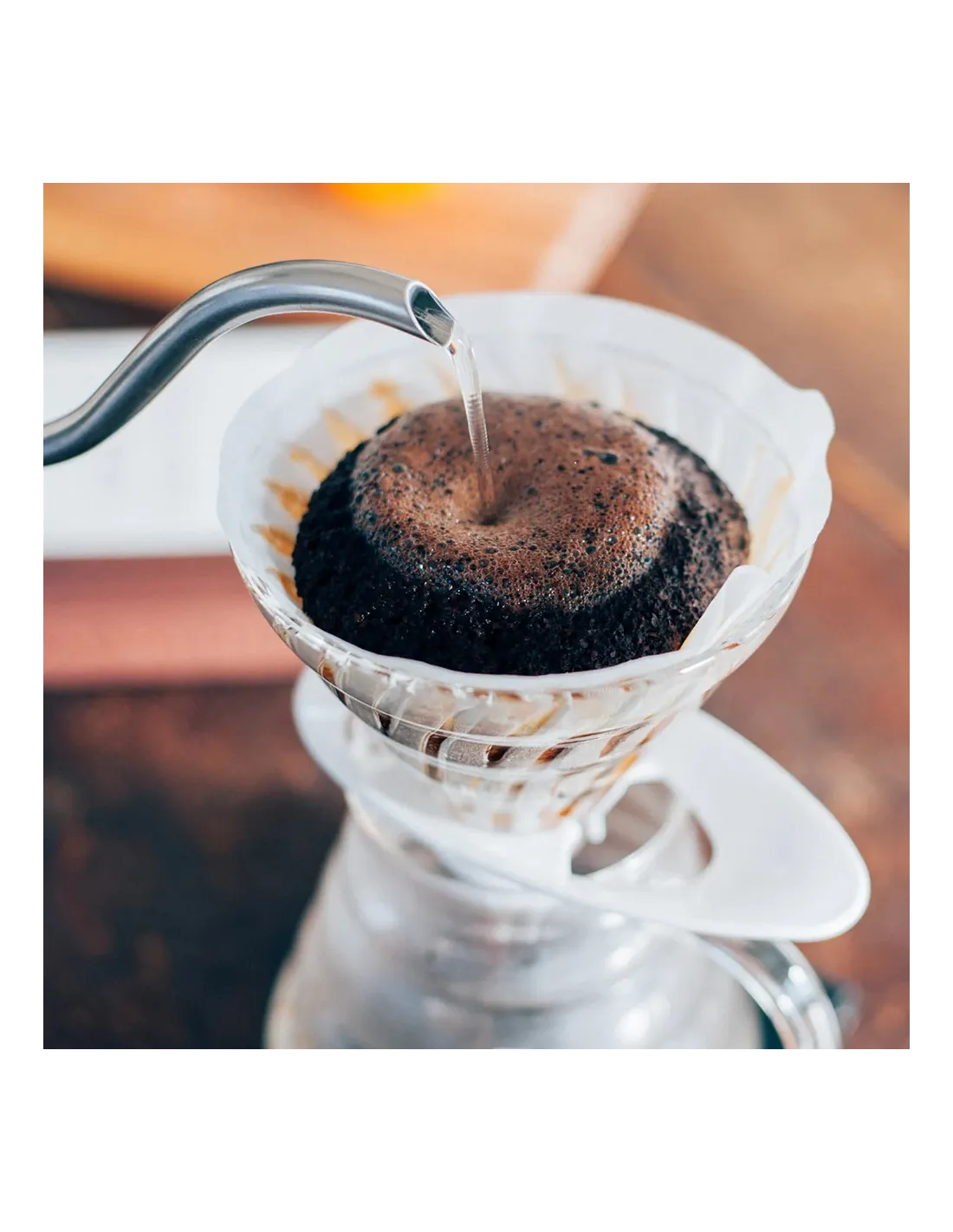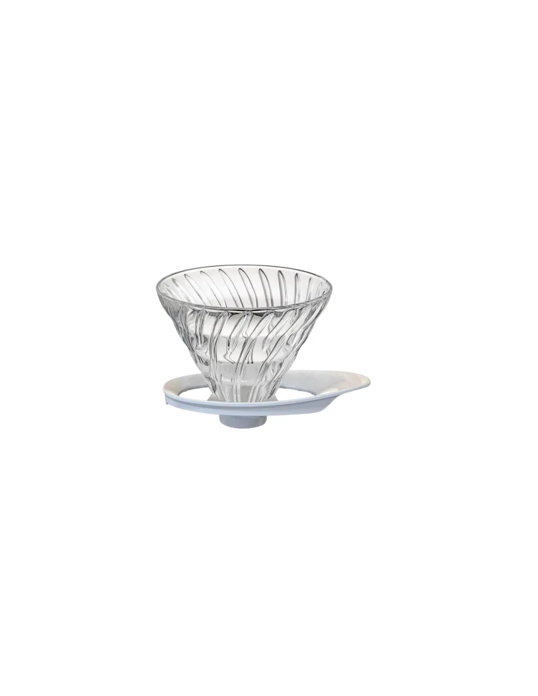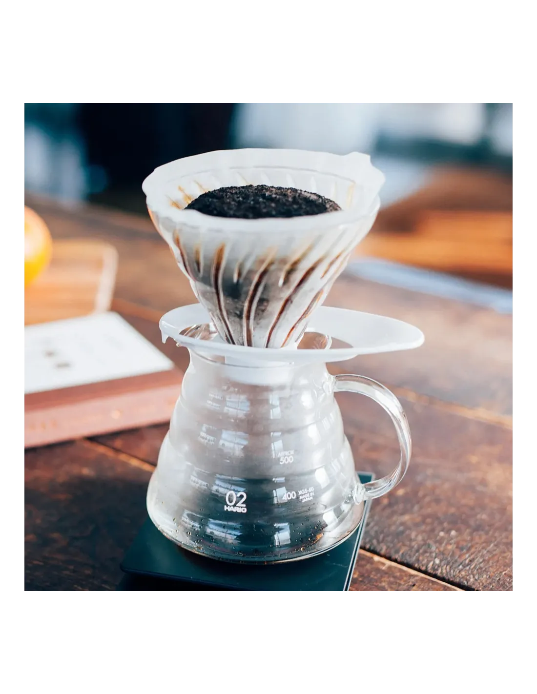 The Hario V60 glass dripper for perfect preparation of 2-4 cups of fresh filter coffee.