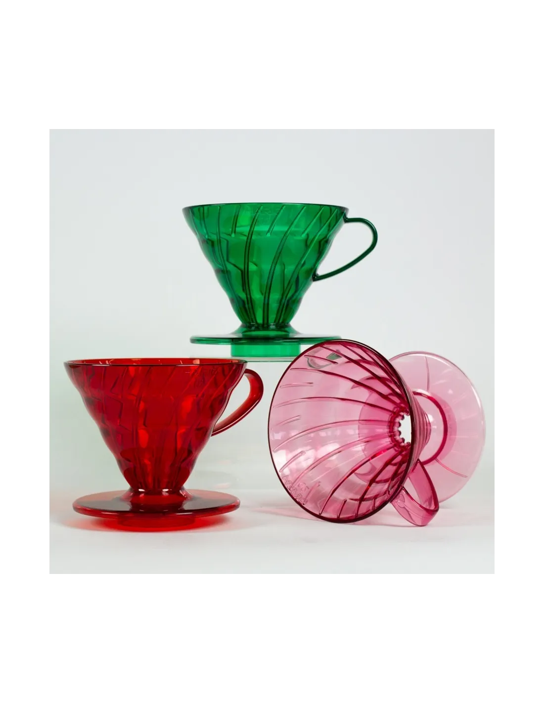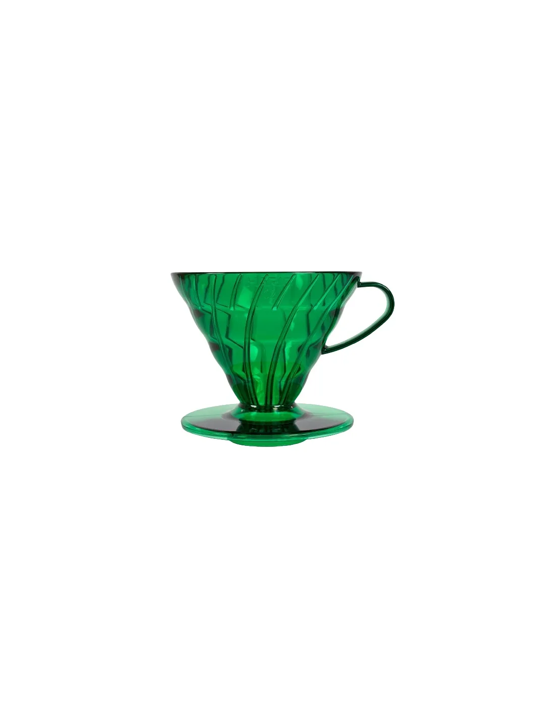 Hario V60 plastic dripper for easy preparation of 1-4 cups of filter coffee. Green design.