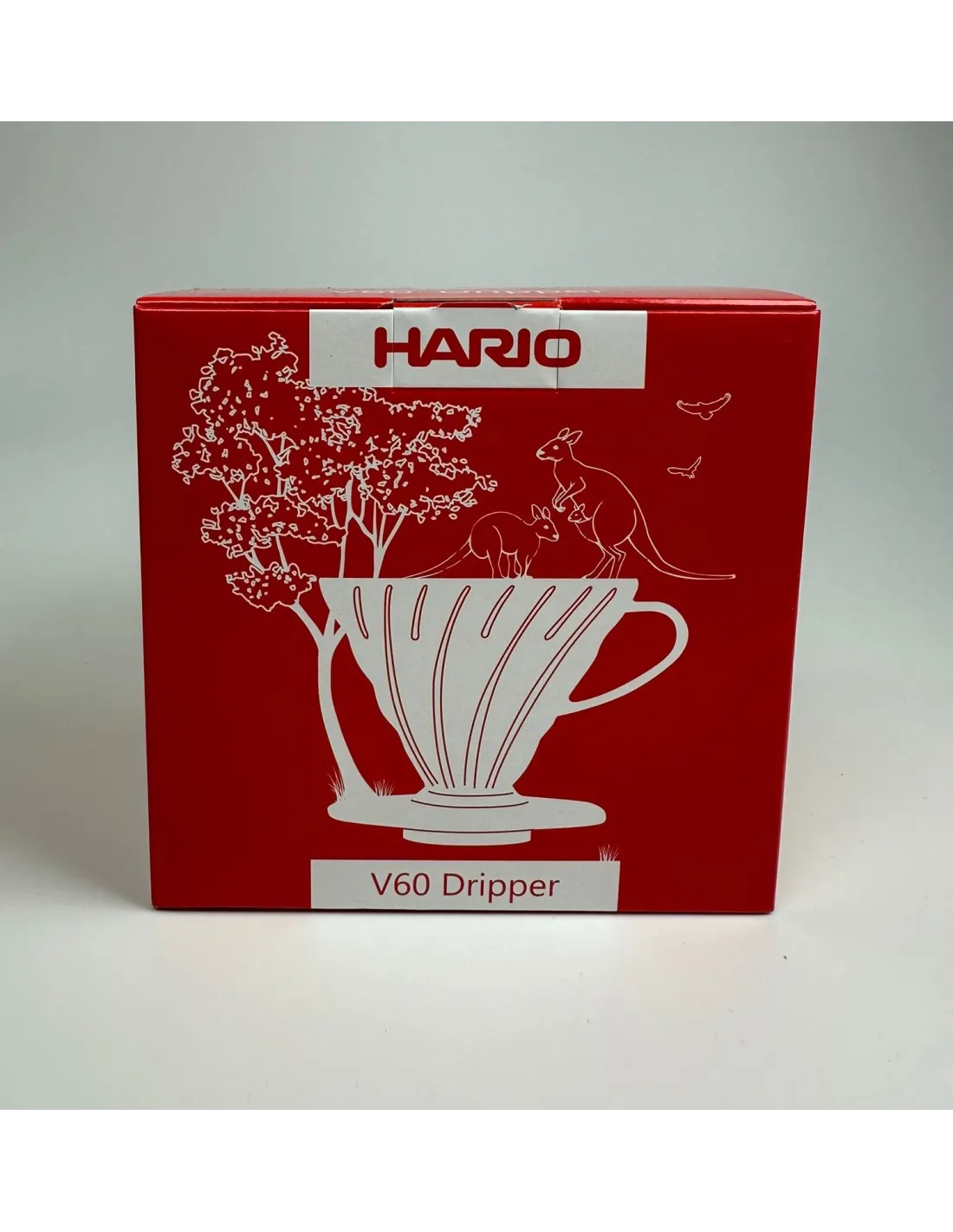 Hario V60 plastic dripper for easy preparation of 1-4 cups of filter coffee. Red design.