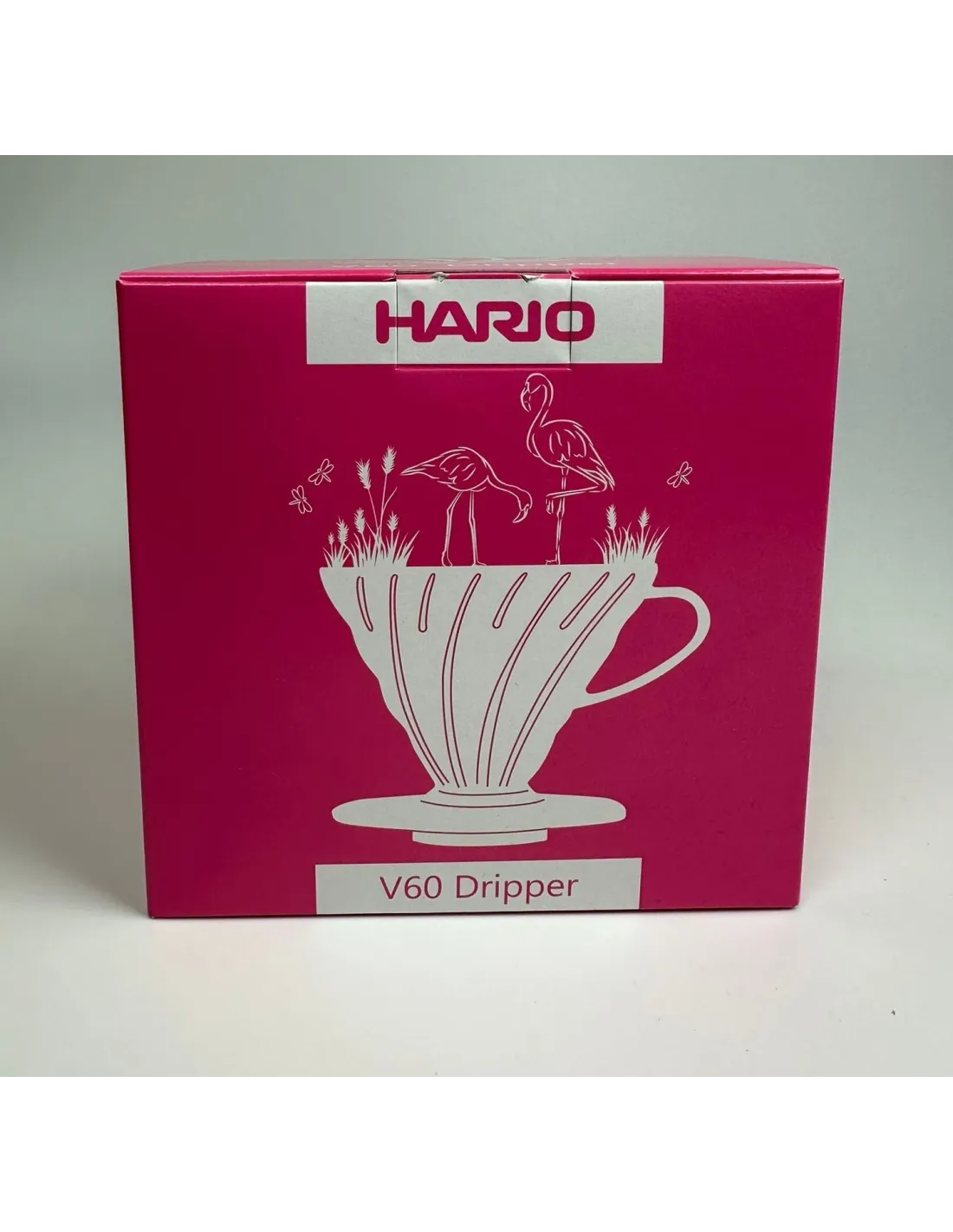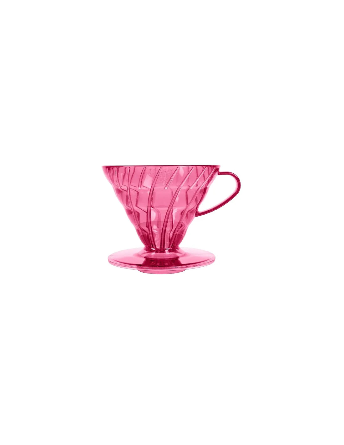 Hario V60 plastic dripper for easy preparation of 1-4 cups of filter coffee. Pink design.