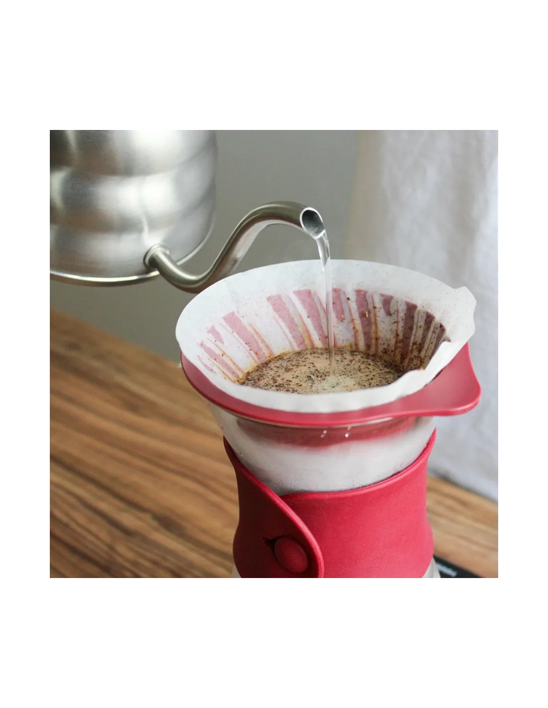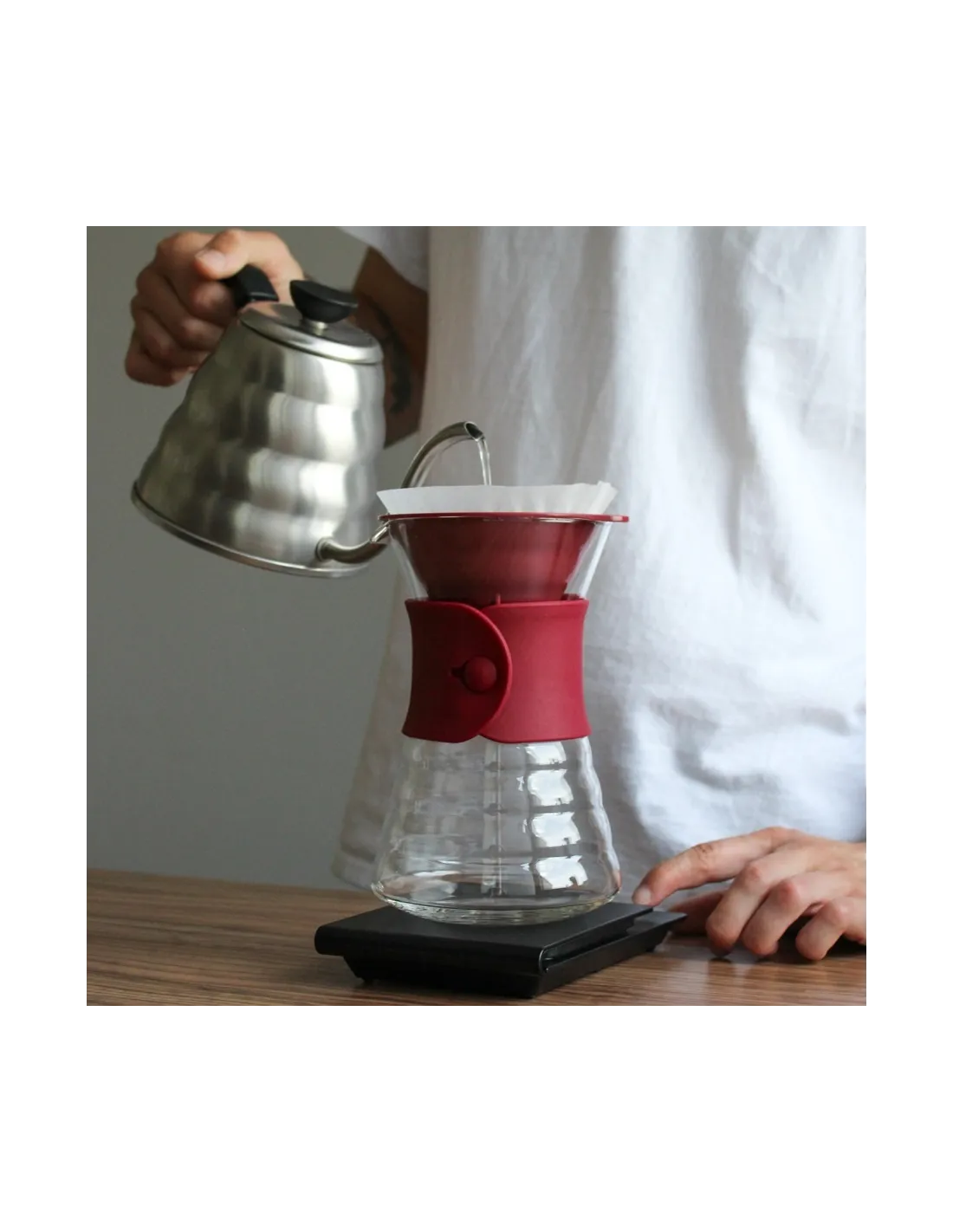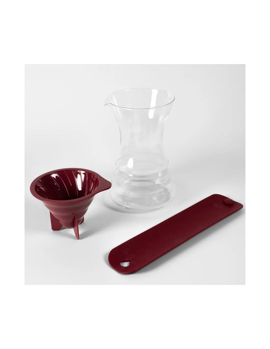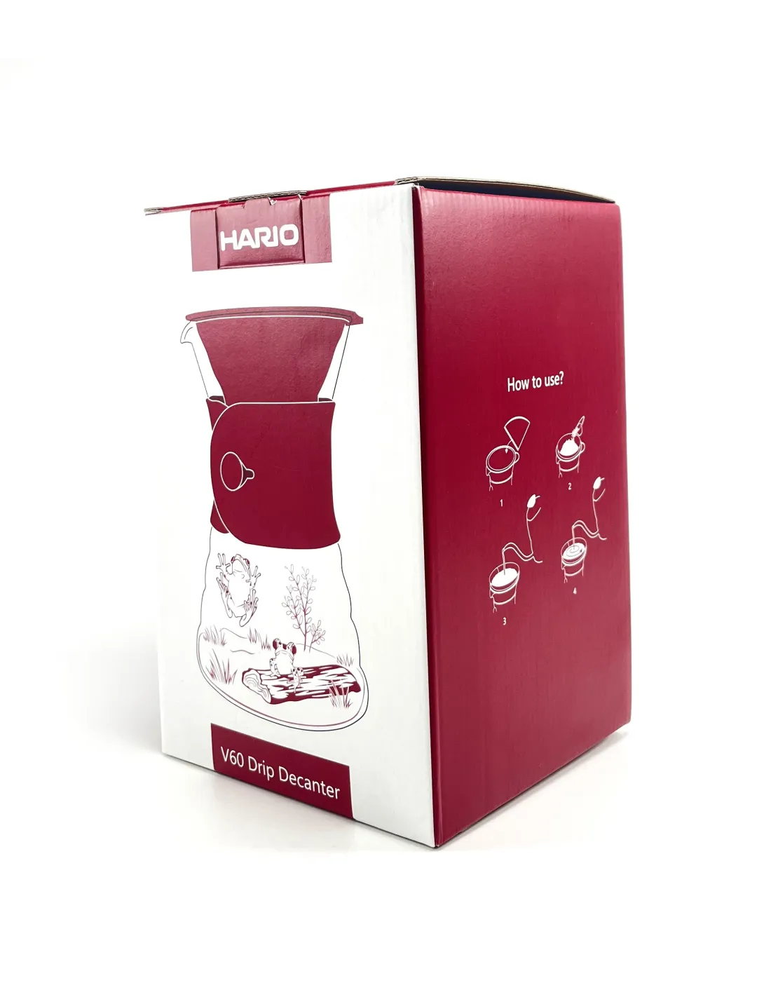 If you're really serious about filter coffee, or just like it all together, you'll love the Hario V60 Drip Decanter, which consists of a plastic V60 dripper, an elegant borosilicate glass decanter and 40 pieces of Hario paper filters, size. 02. All in the V60 series design.