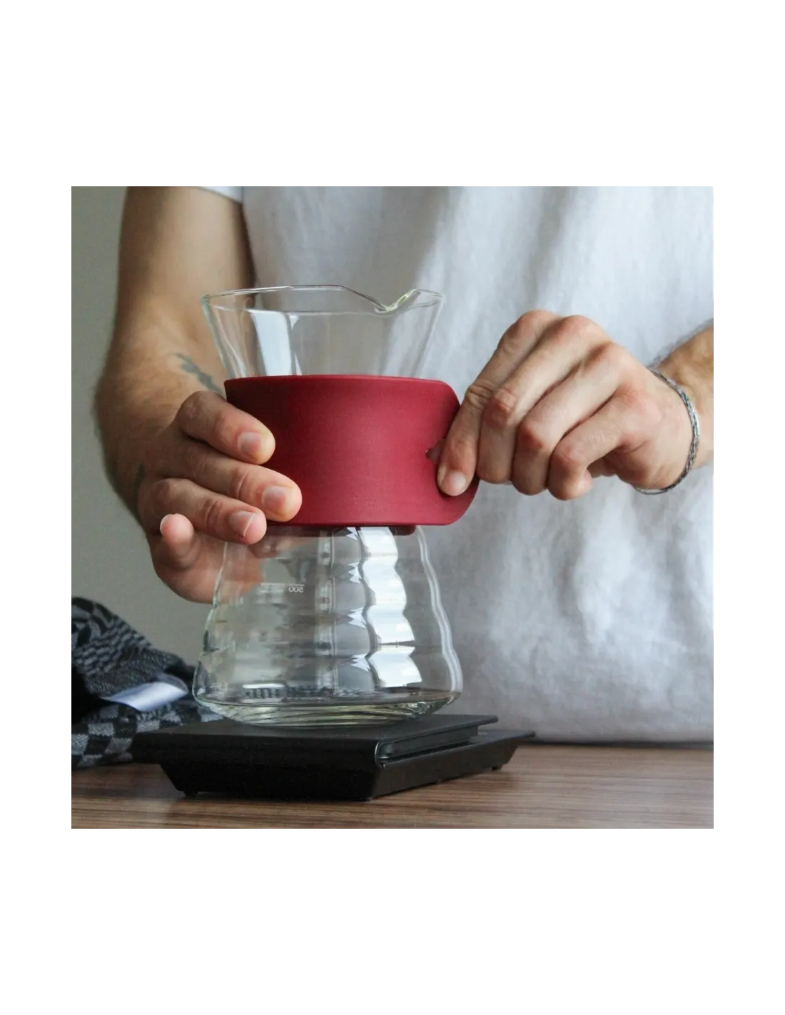 The decanter will surprise you with its lightness and user-friendliness. The carafe is encased in a heat-resistant silicone corset that protects against scalding. This makes the carafe very easy to hold in your hand.