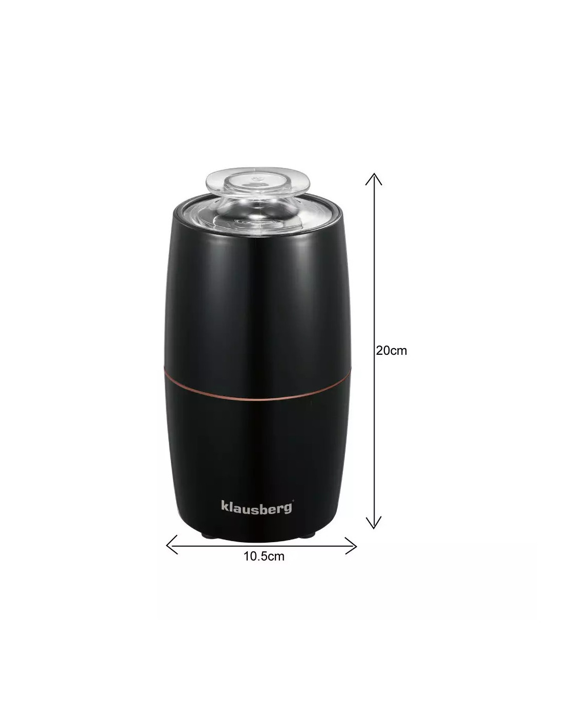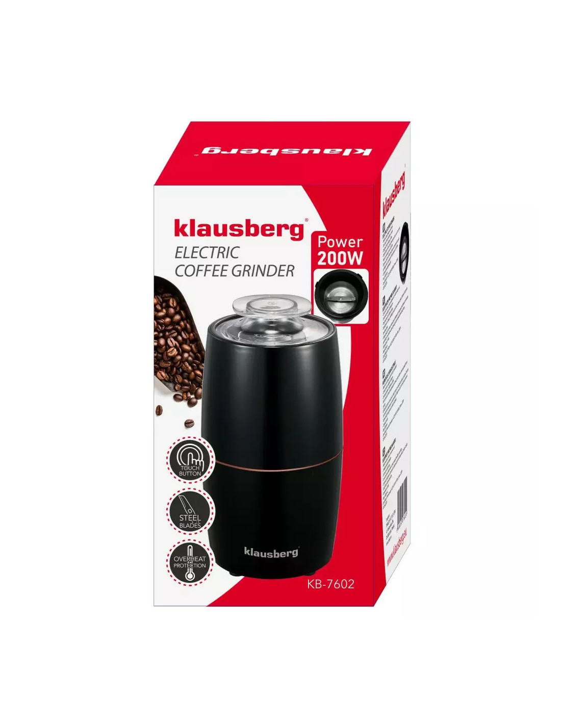 Compact Klausberg electric grinder with stainless steel blade and container. Simple one-button operation, suitable for fine and coarse grinding.