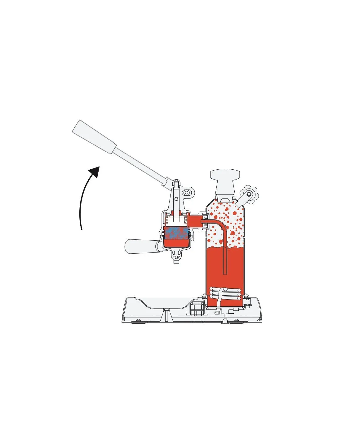 Theentire coffee preparation is done manually, first by lifting the lever to fill the head of the machine with water and then pressing it to push the water through the coffee. The pressure is created only by your force and there is no pump or spring. Up to 16 cups of coffee can be made in one filling of the boiler.