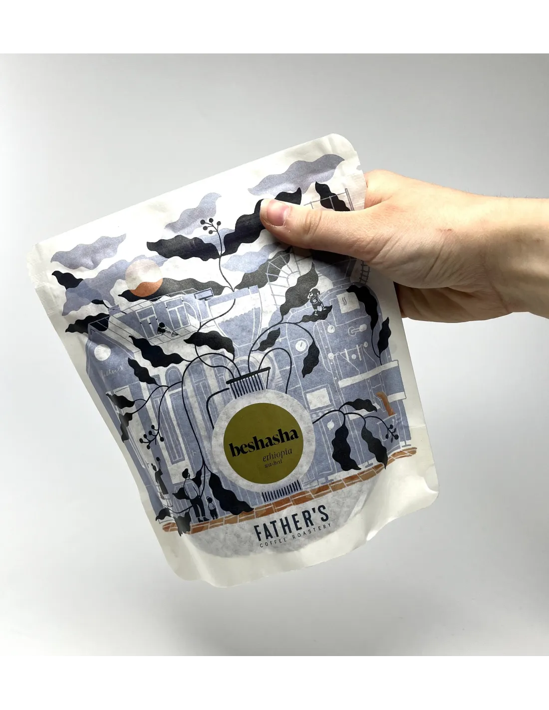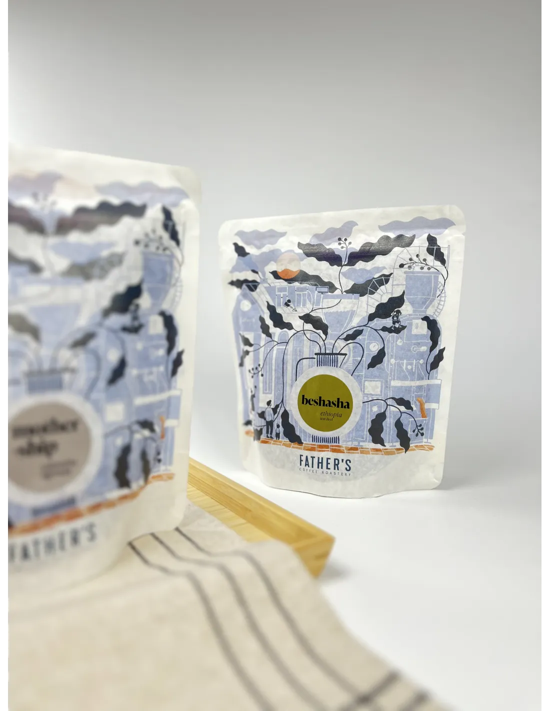 Mustefa uses a small depulper to remove the skins and pulp during washed processing. Due to the limited amount of water and space , the coffee is fermented for only a short time, approximately 8 hours, and then dried for 13-16 days depending on the weather. The result is a coffee with a character reminiscent of the honey method. Beshasha processes not only its own crop at the station, but also coffee from neighbouring farmers with plantations of 4 to 10 hectares. With growing demand, he opened a second station, Kabira, in 2020, focusing on natural and anaerobic processing.