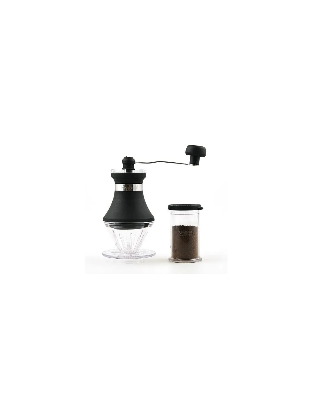 Grinddripper or hand grinder with ceramic grinding stones and dripper for preparing fresh filter coffee in one!