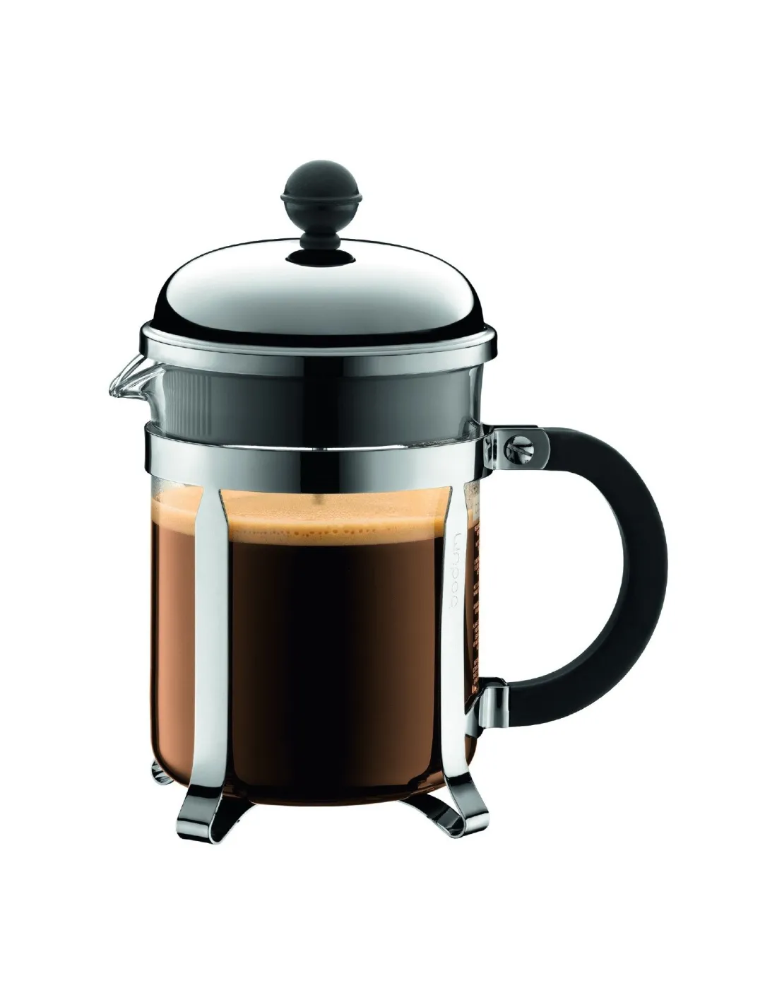 The luxurious and elegant Bodum Chambord stainless steel French press with a capacity of 500 ml for the preparation of delicious fresh coffee.