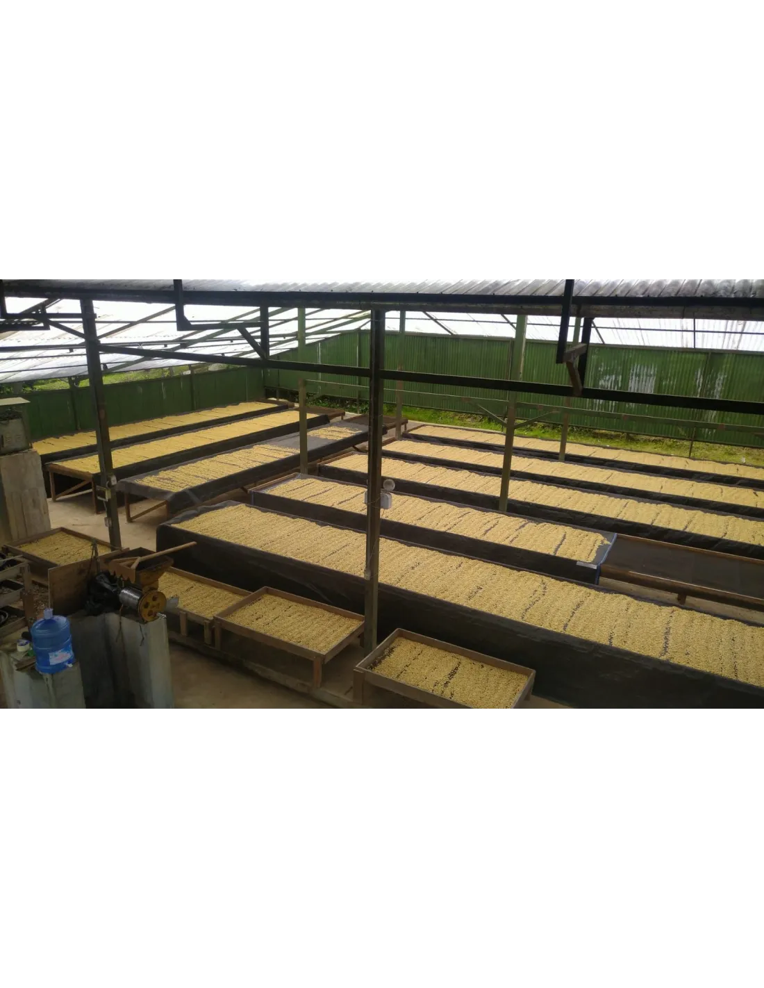 The most common processing method is the fully washed process, where the coffee cherries are first pulped, then fermented and dried in the sun on raised beds or in drying sheds. Recently, drying greenhouses and parabolic beds have also become widespread. After drying, the coffee is sold in parchment form to cooperatives or to middlemen if the farmers are not members of cooperatives.