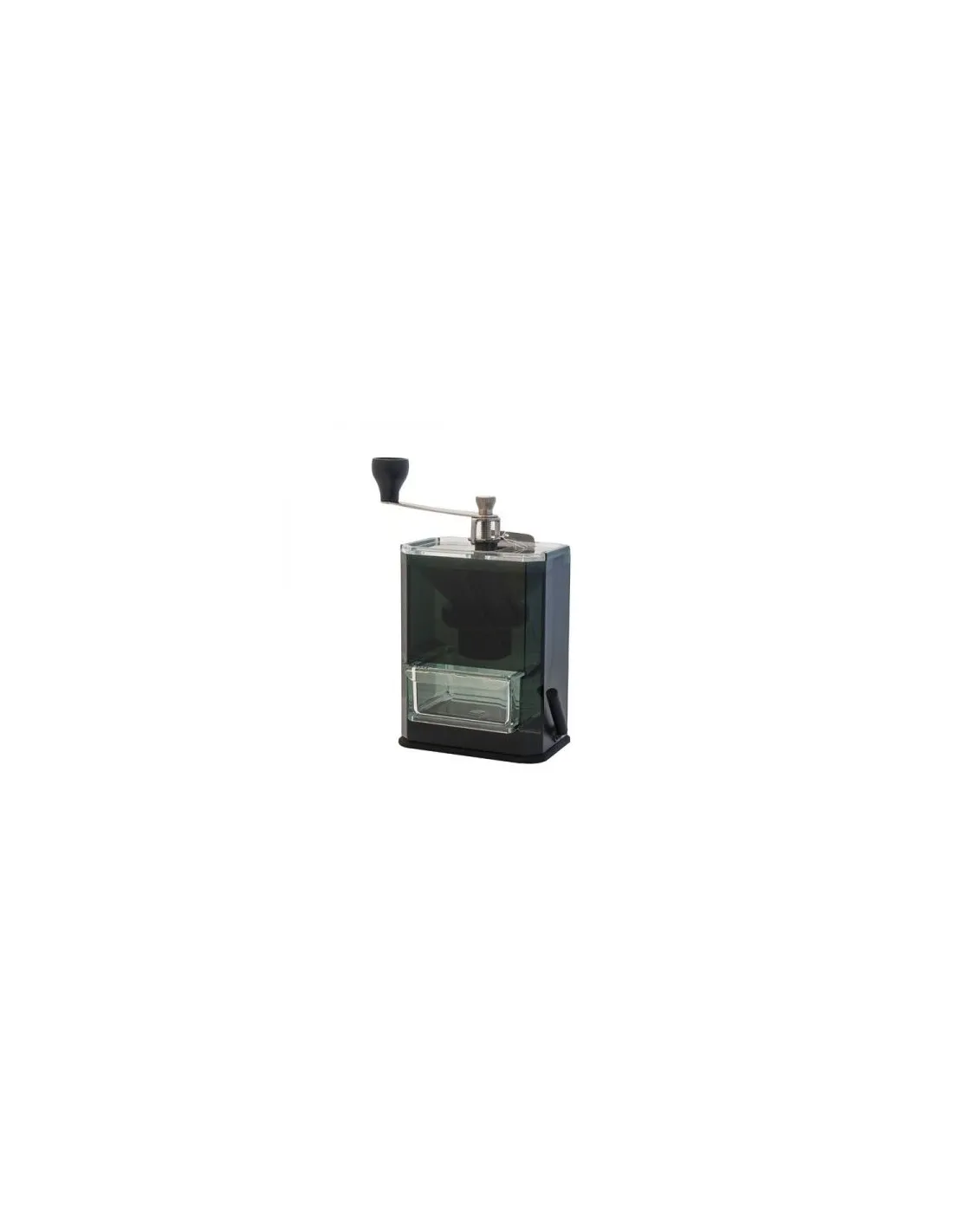 The Hario Clear MXR-2TB manual coffee grinder with ceramic grinding stones, adjustable grinding coarseness and a practical suction cup at the bottom.