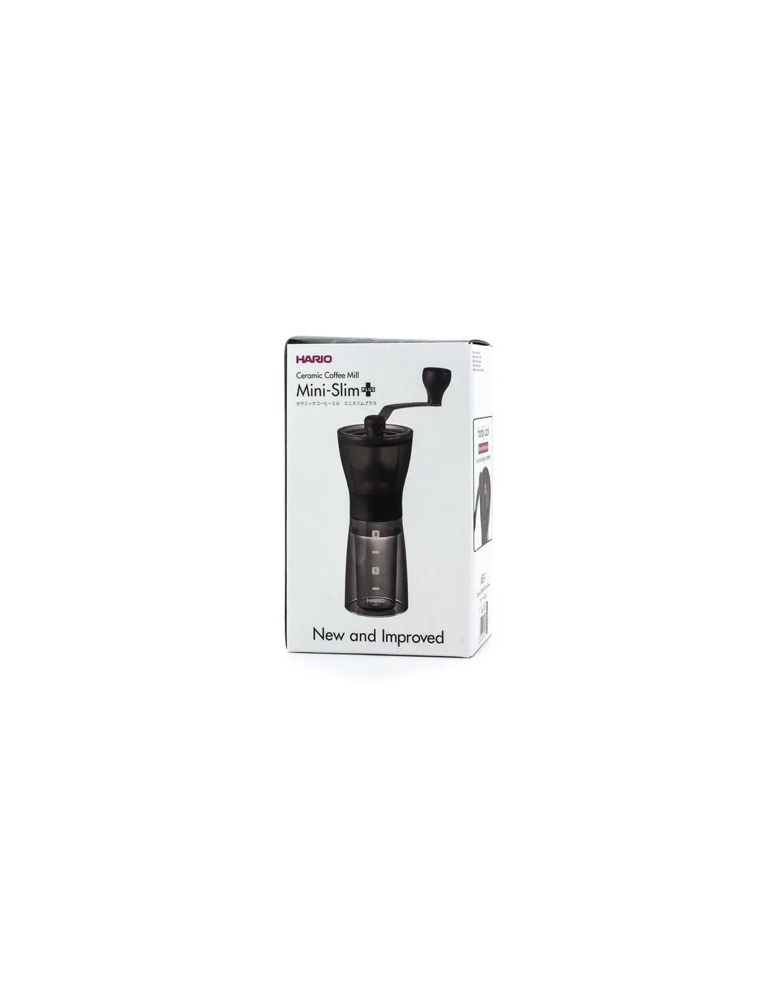 The Hario Mini Mill Slim PLUS is a new version of the popular Mini Mill Slim with an improved hexagonal handle in an elegant dark smoke finish.