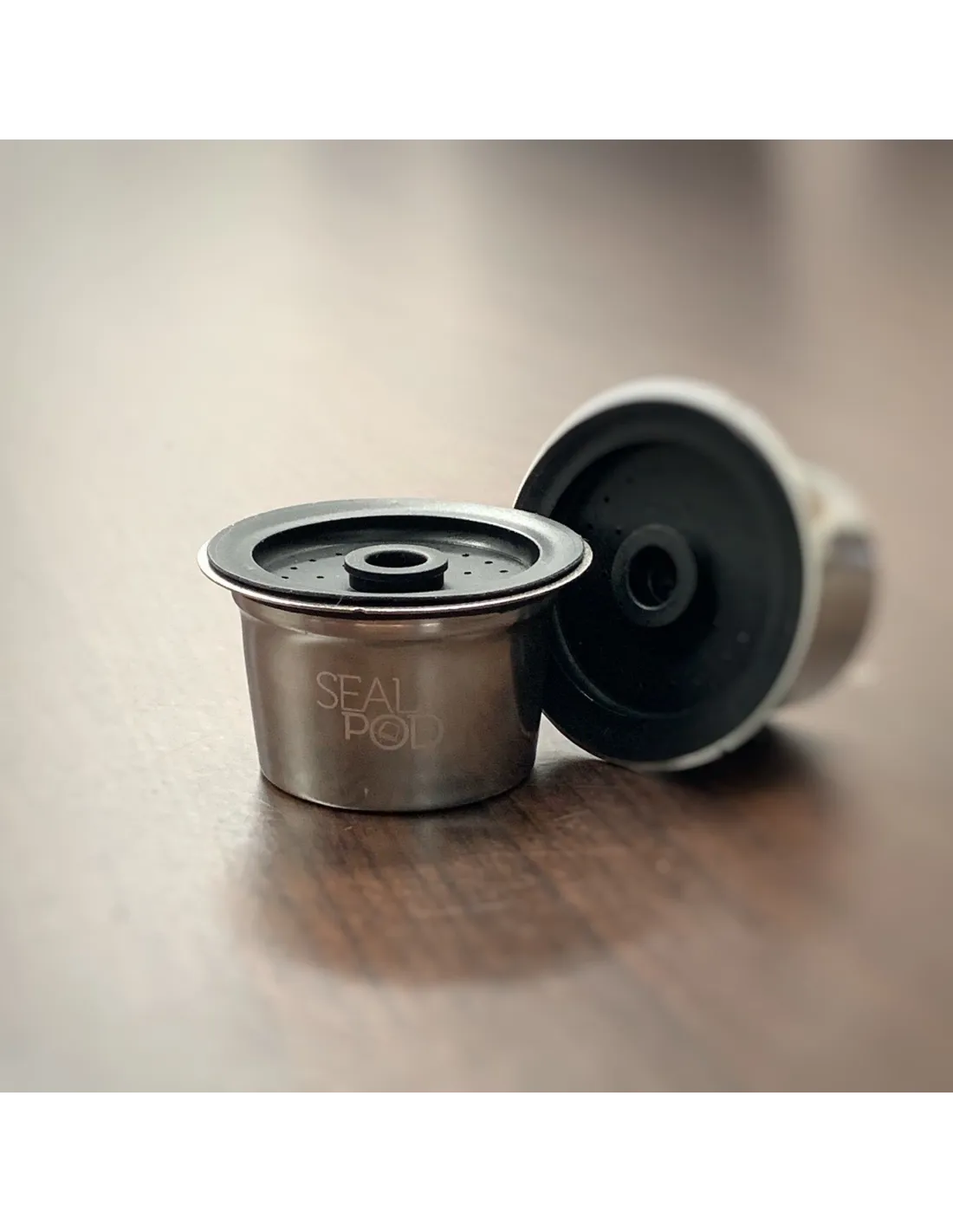 Unlike plastic filling capsules, the Sealpod stainless steel capsule has an unlimited shelf life. So you can fill the capsule indefinitely , it won't fall apart. The capsule is closed with a silicone cap, which is also not limited by the number of uses thanks to the modified hole for the coffee machine needle. You will definitely save with a refillable capsule.